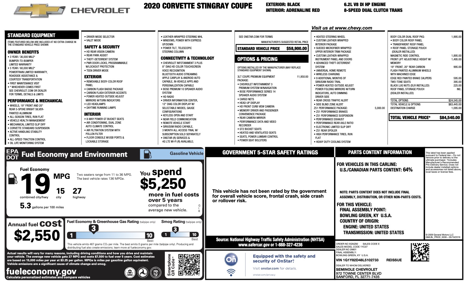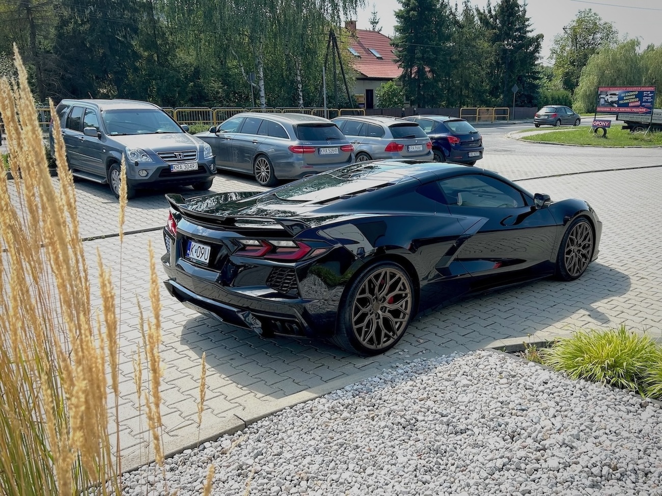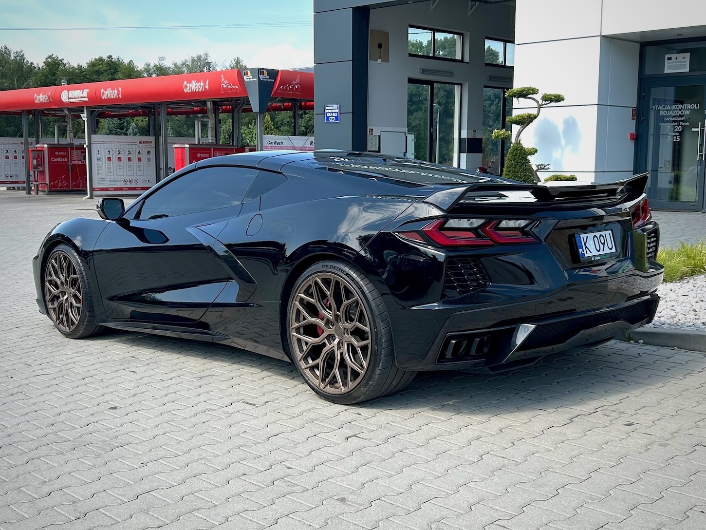 INFO: Cena samochodu podana w ofercie dotyczy STANDARDOWYCH KOŁ Corvette C8 20 cali. Koła Vossen HF-2 widoczne na zdjęciach są dodatkowo płatne – zapytaj o cenę kół opiekuna oferty.