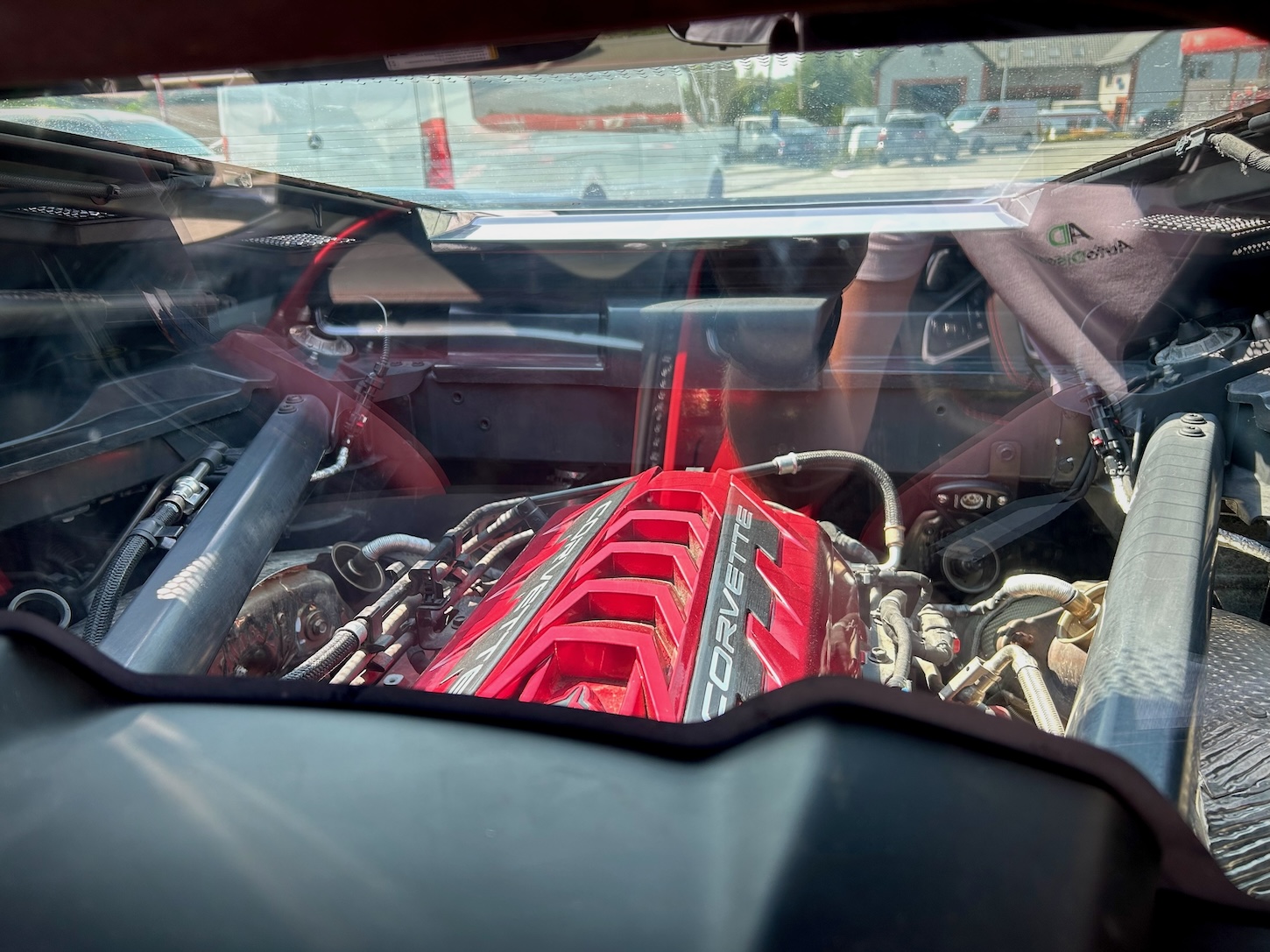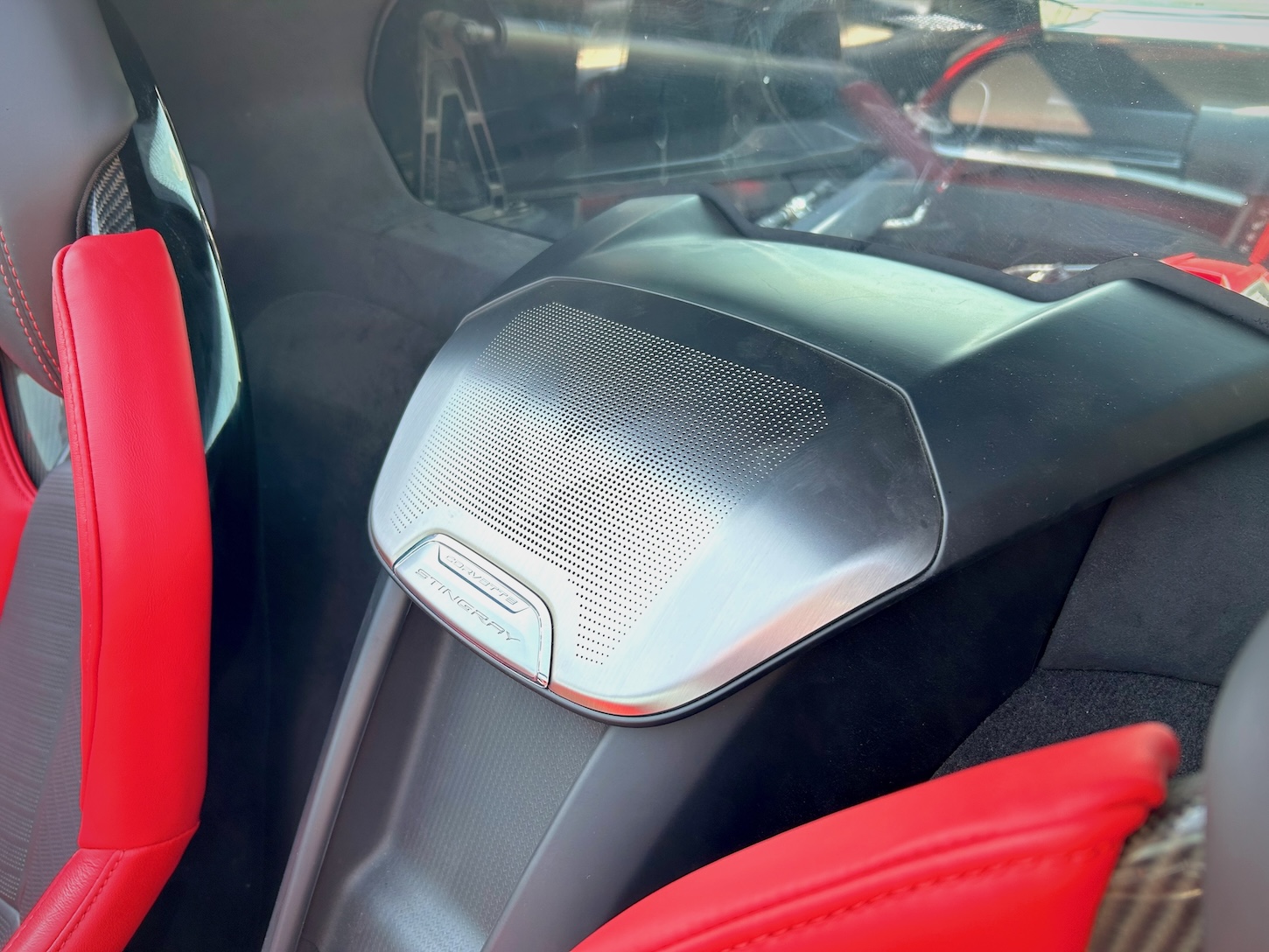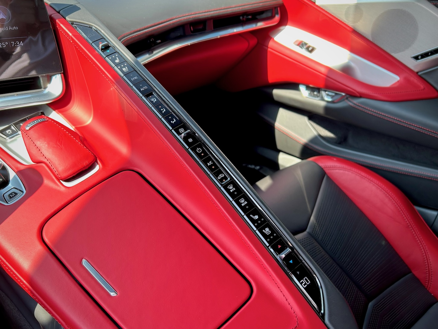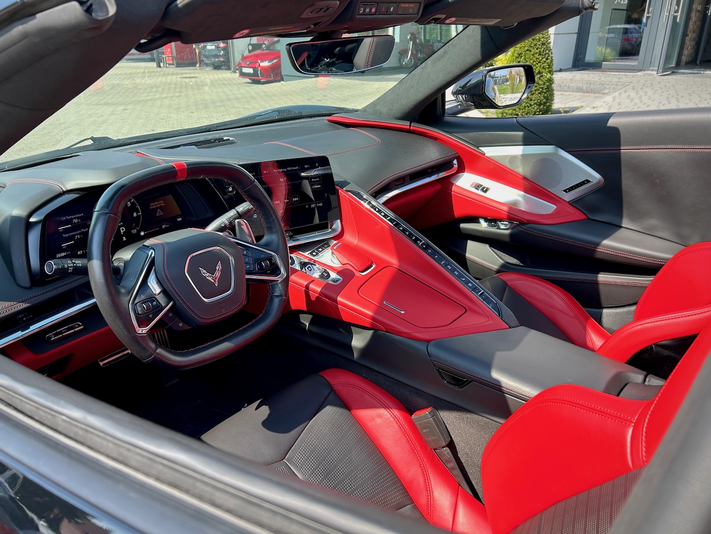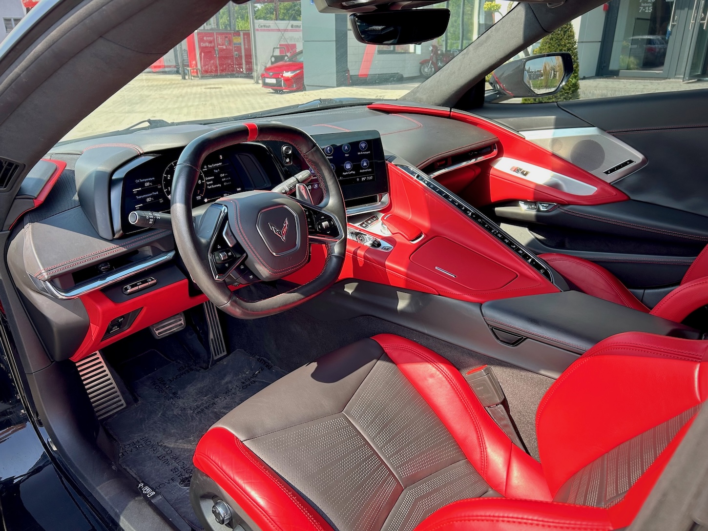 Zatem nasz egzemplarz posiada wszytko to, co każda Corvette C8 Stingray sprzedawana w Polsce mieć powinna: 3LT, Z51, Magentic Ride, Front Lift, do tego czerwone zaciski i dwukolorową tapicerka… Importowe Must Have!