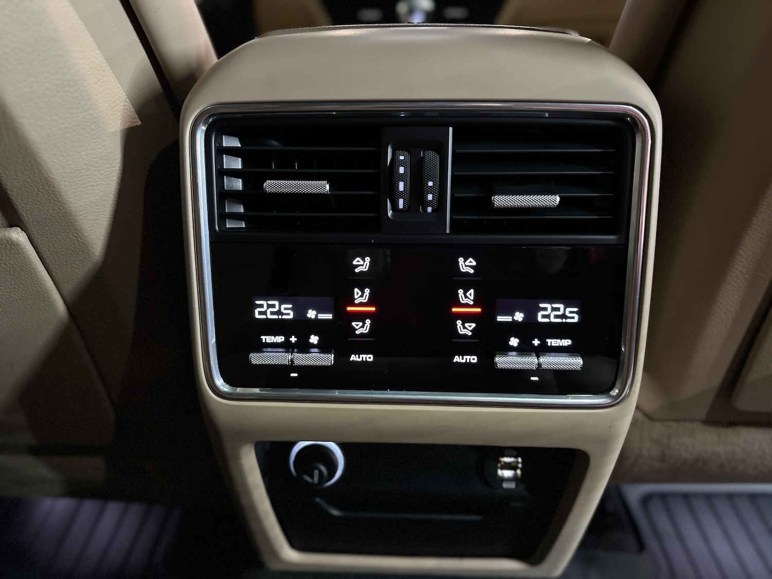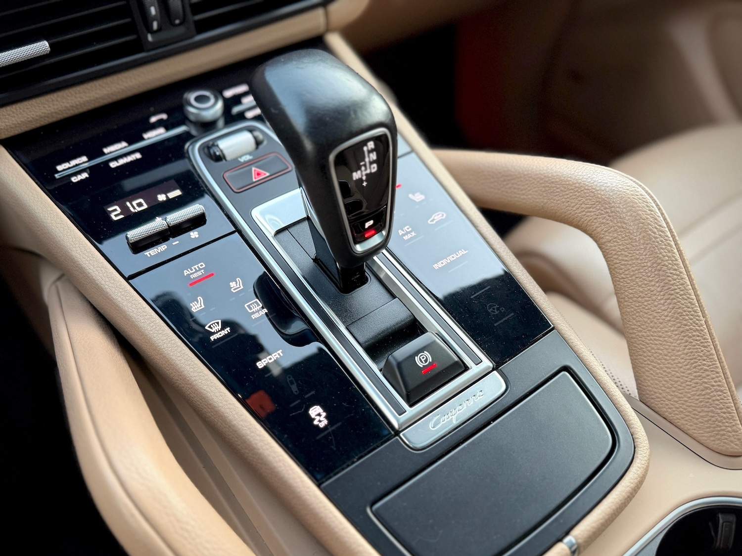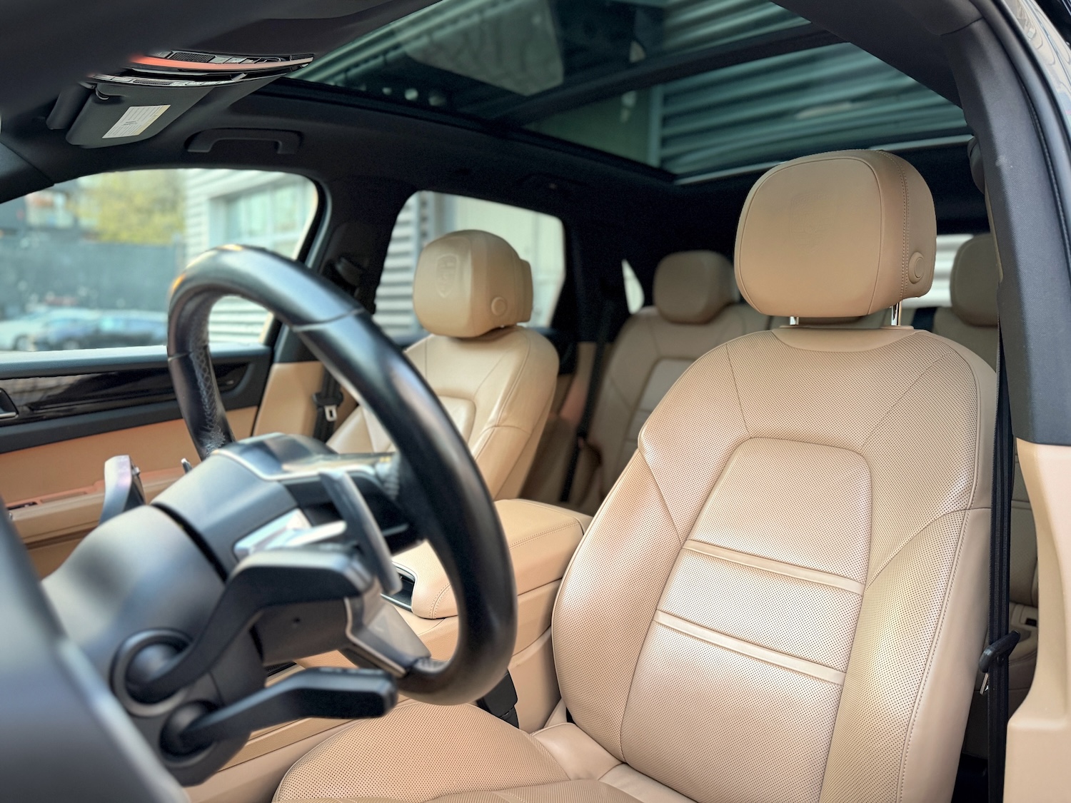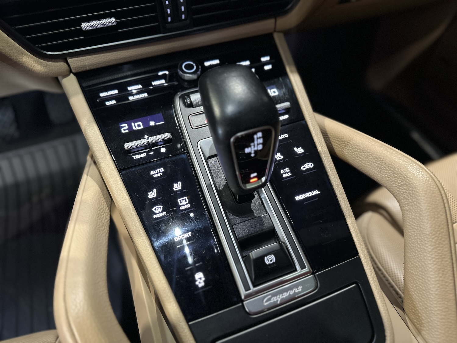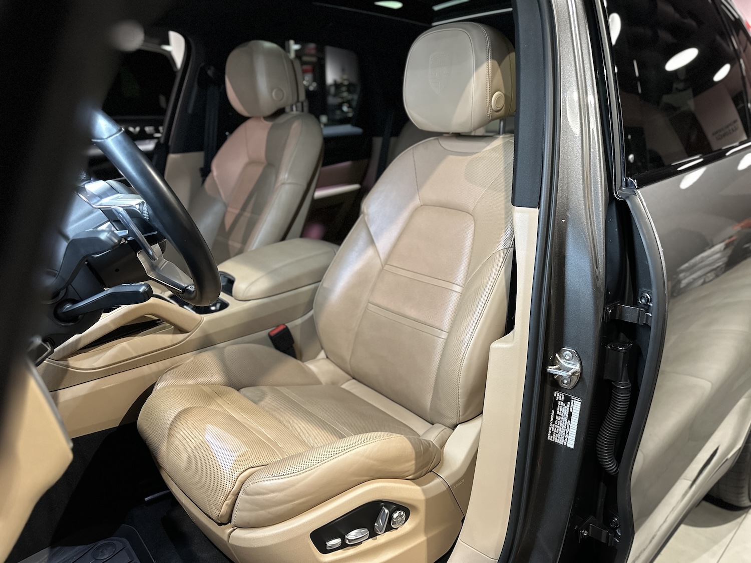- Fotele przednie kubełkowe, klimatyzowane (ogrzewane i wentylowane), sterowane elektrycznie w 12 kierunkach, z podparciem odcinka lędźwiowego i pamięcią ustawień, z logotypem Porsche wyszytym na zagłówkach