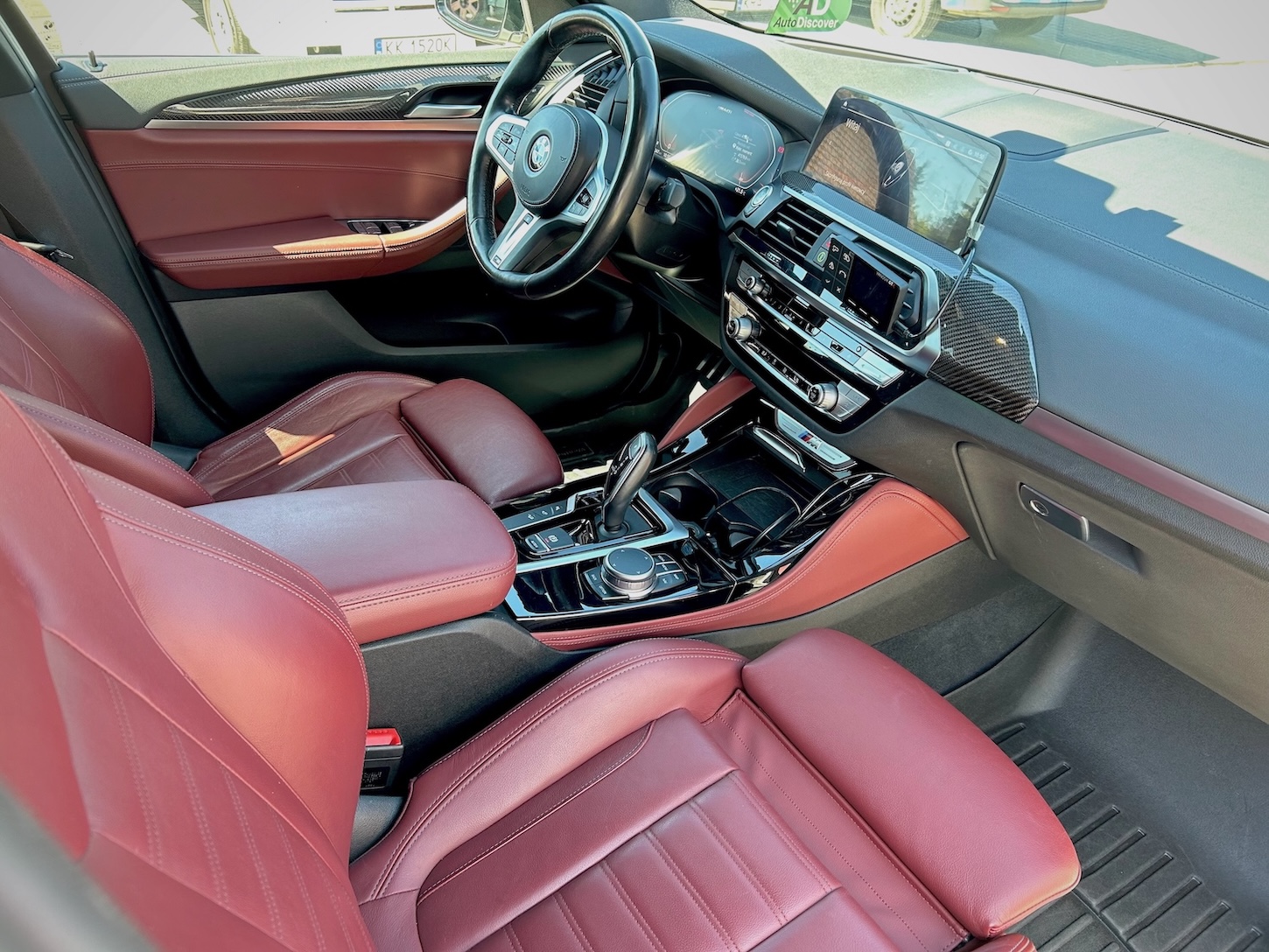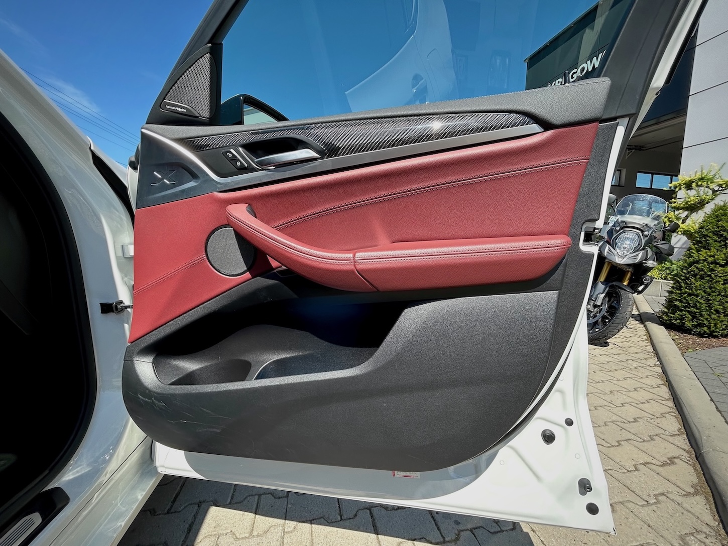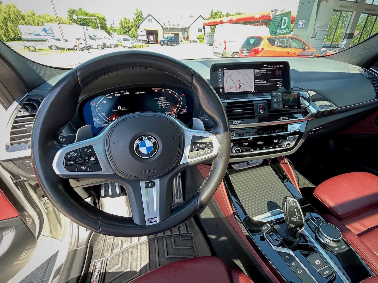 Cyfrowy kokpit z CarPlay, skóry Vernasca, wentylowane fotele, head-up display, nagłośnienie Harman/Kardon, oświetlenie full-LED, adaptacyjny tempomat czy hak elektryczny… a to tylko część z udogodnień z zakresie komfortu, ergonomii i bezpieczeństwa, które znajdziemy w tym egzemplarzy X4 M40i.