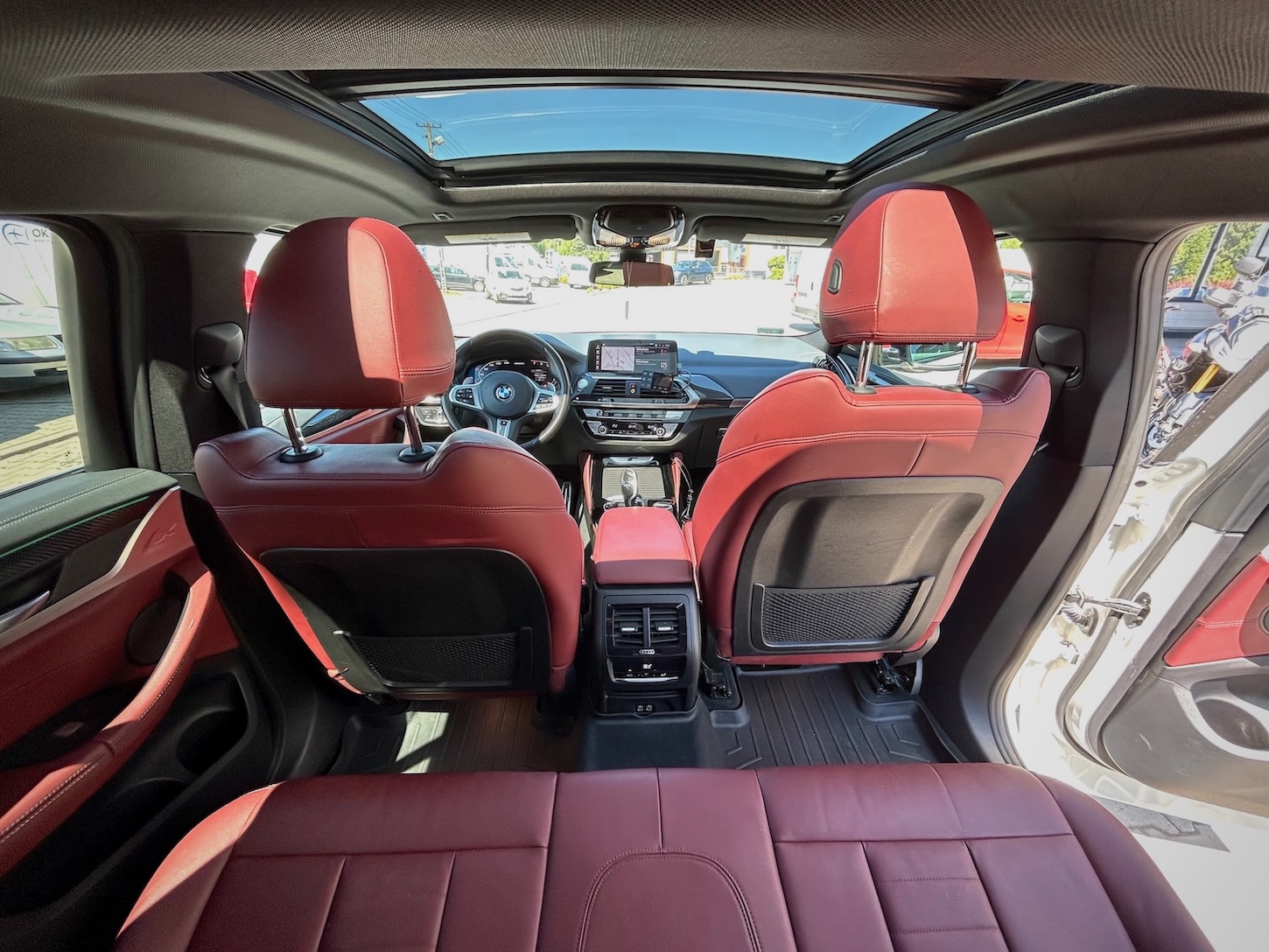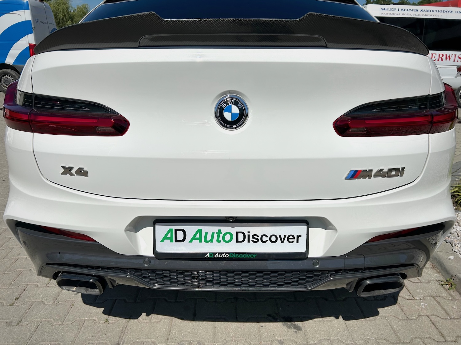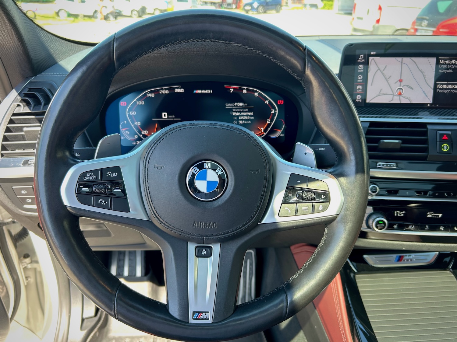 Cyfrowy kokpit z CarPlay, skóry Vernasca, wentylowane fotele, head-up display, nagłośnienie Harman/Kardon, oświetlenie full-LED, adaptacyjny tempomat czy hak elektryczny… a to tylko część z udogodnień z zakresie komfortu, ergonomii i bezpieczeństwa, które znajdziemy w tym egzemplarzy X4 M40i.