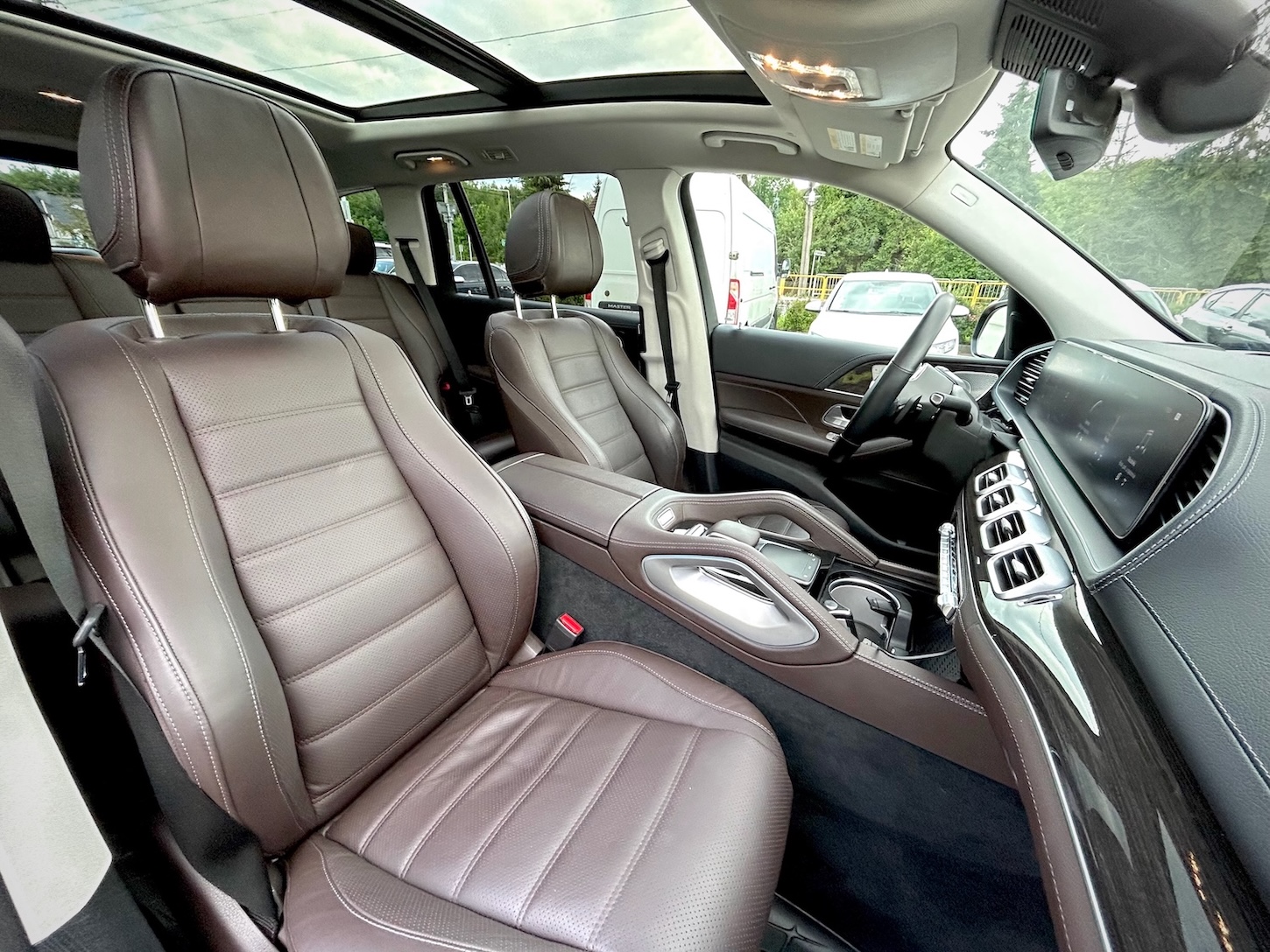 Na wyposażeniu auta jest wszytko to, czego mozna by oczekiwać po topowym Mercedesie – naturalne skóry, fotele z wentylacją i masażami, wielostrefowa klimatyzacja, wirtualny kokpit, nagłośnienie Burmester, adaptacyjny tempomat… i wiele wiele więcej!