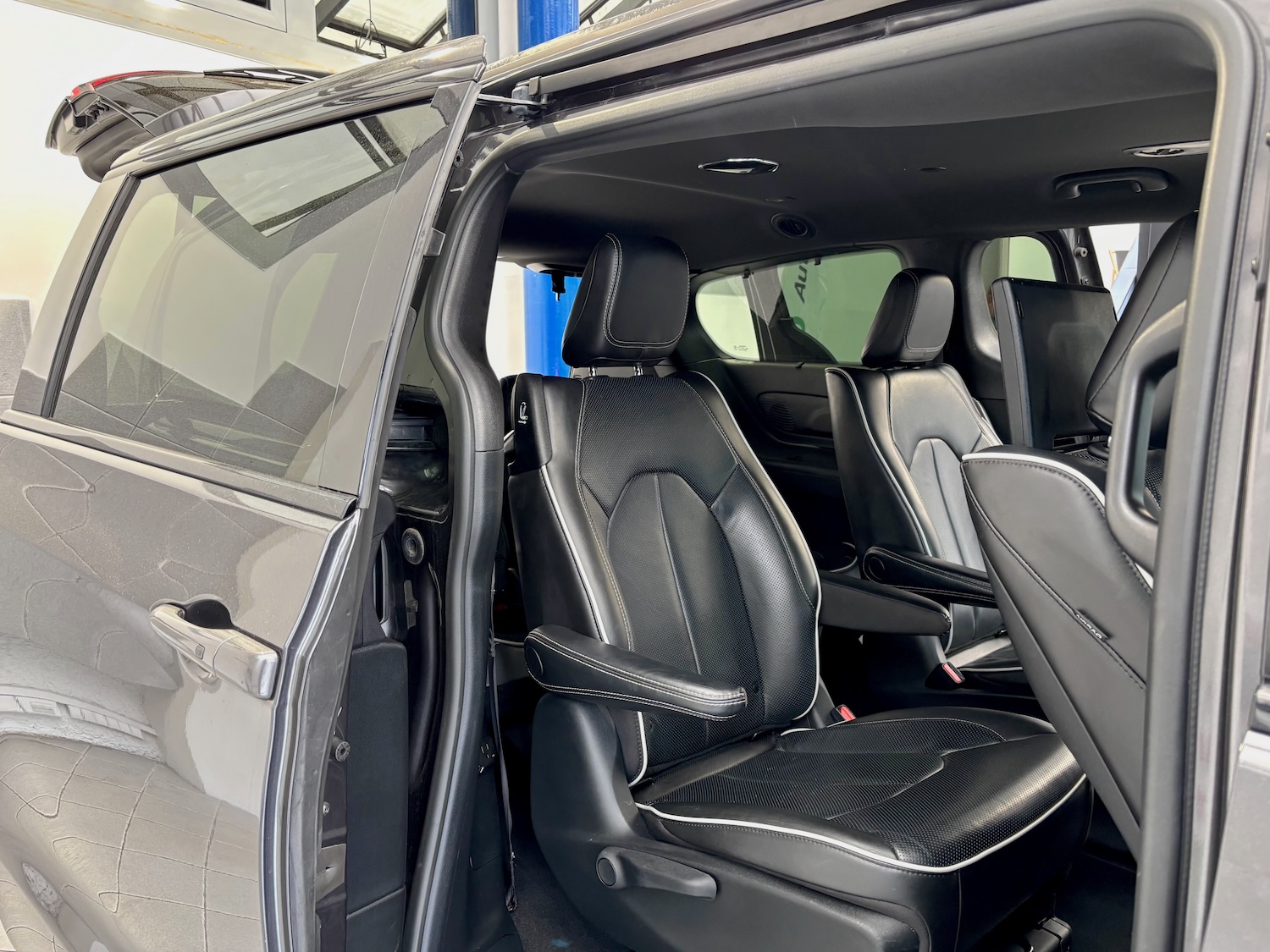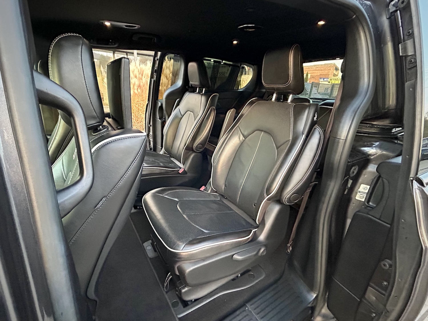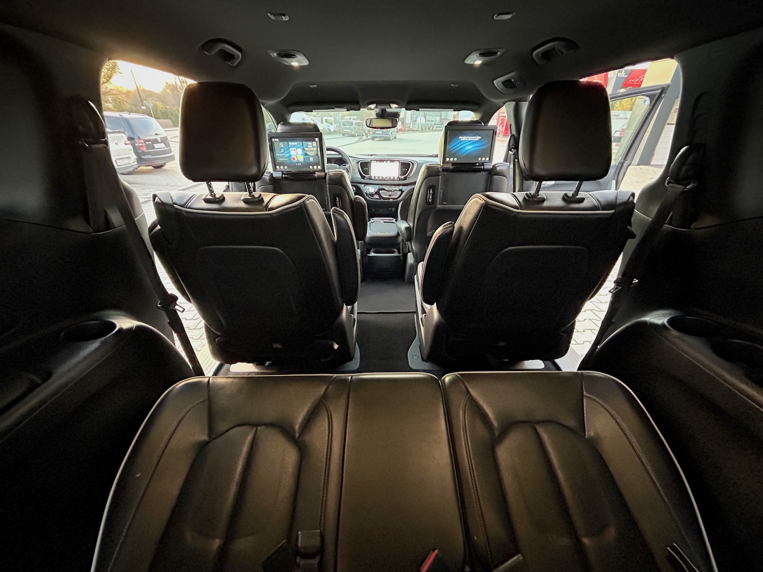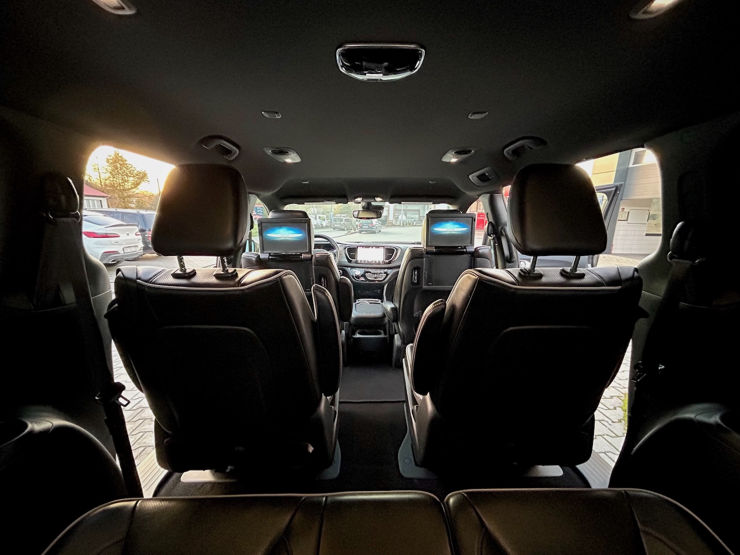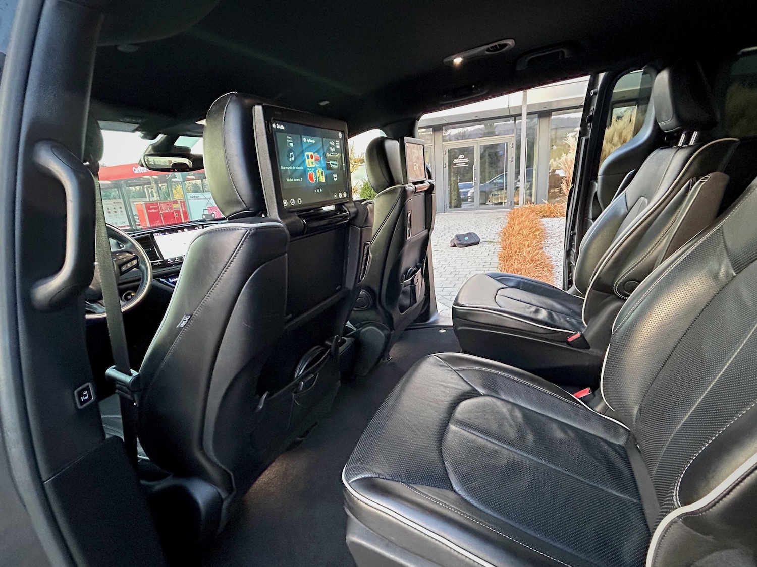 Jak na wersję Limited przystało, mamy tu m.in: grzane i wentylowane fotele, grzaną kierownicę, monitory w zagłówkach ze smart TV (pakiet Theater Family Group), bezprzewodową ładowarkę smartfona, rozbudowany system audio Harman/Kardon…
