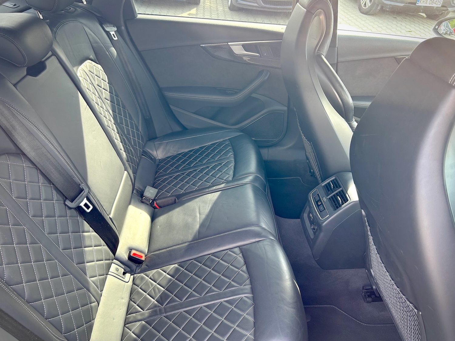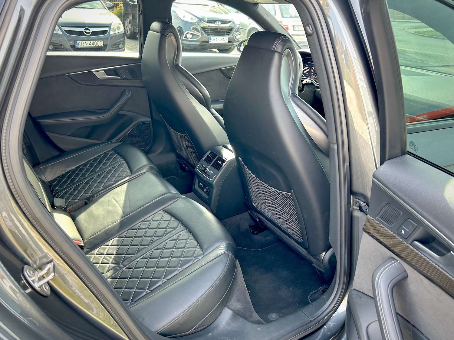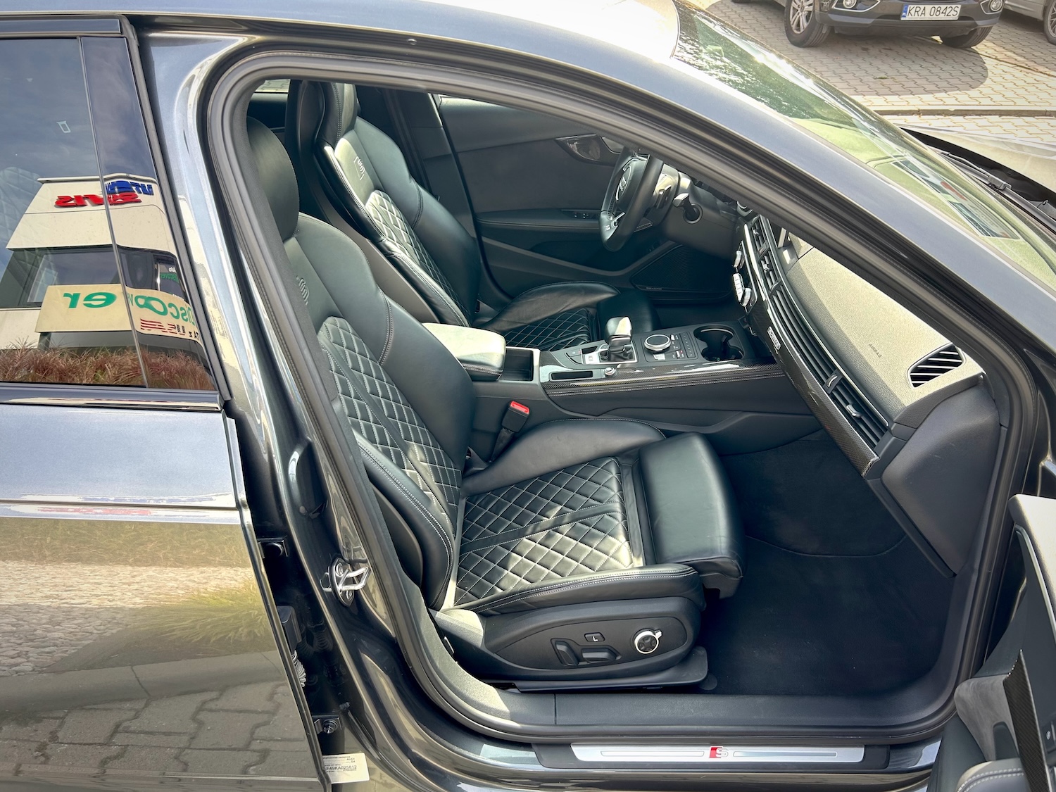 Auto ma przepiękną tapicerkę ze skóry Nappa z przeszyciami Audi Sport w kształcie diamentów, a same fotele są ogrzewane i posiadają funkcję masażu!