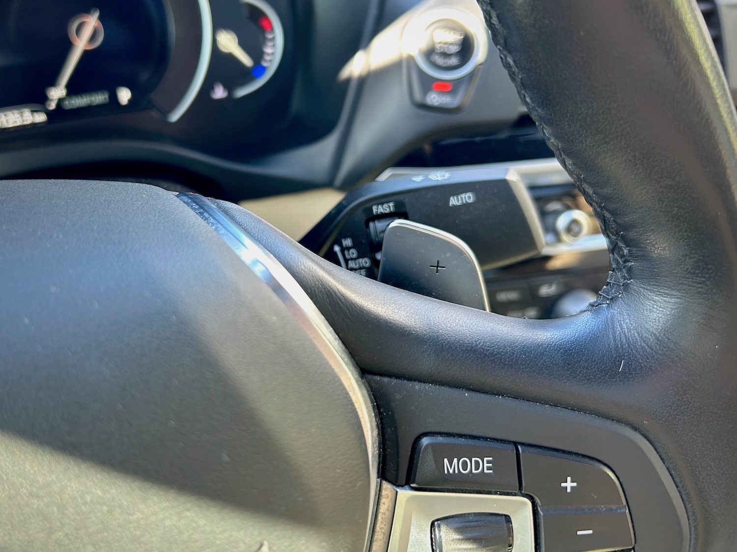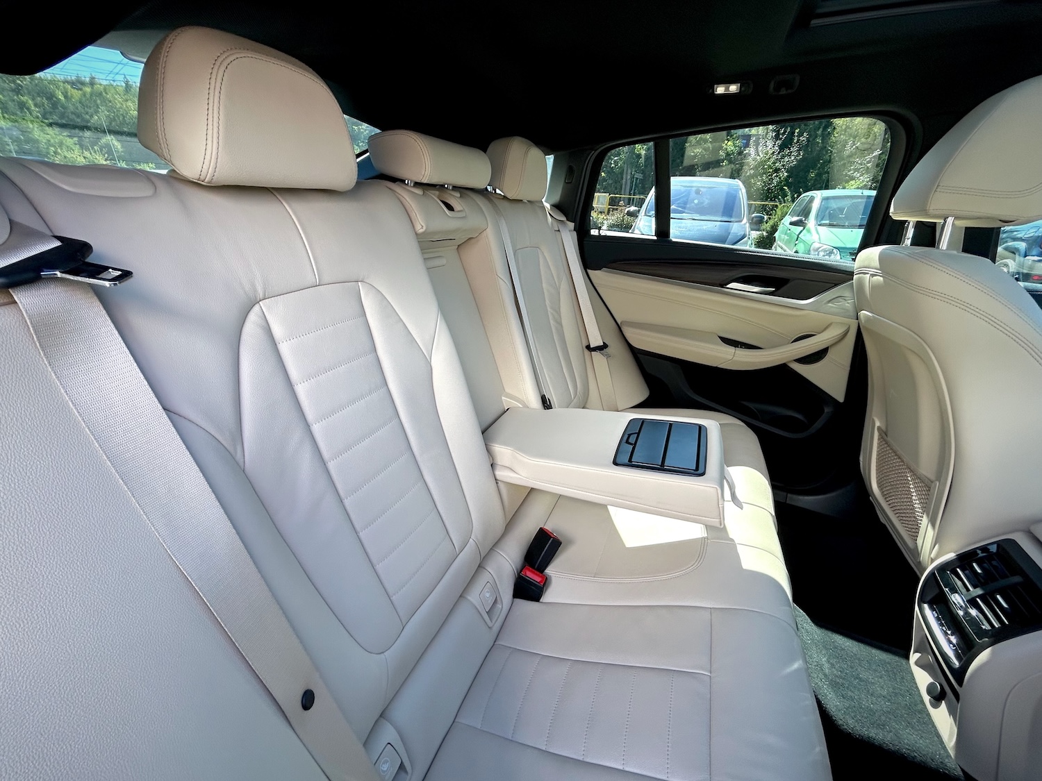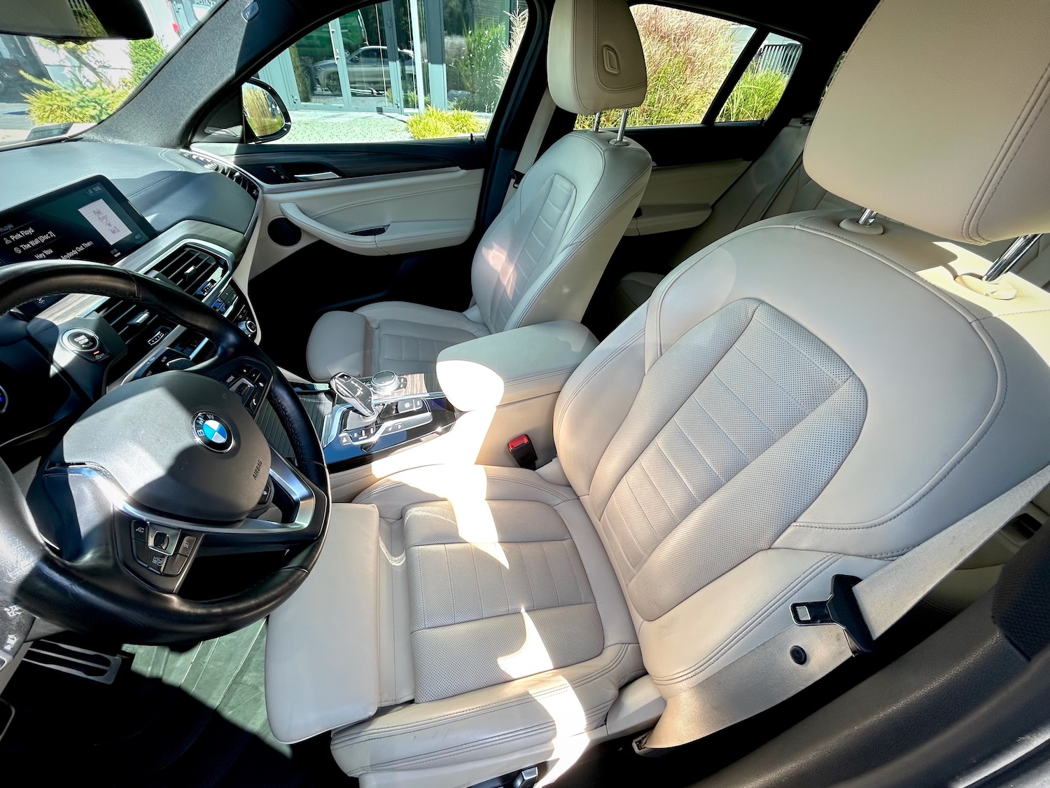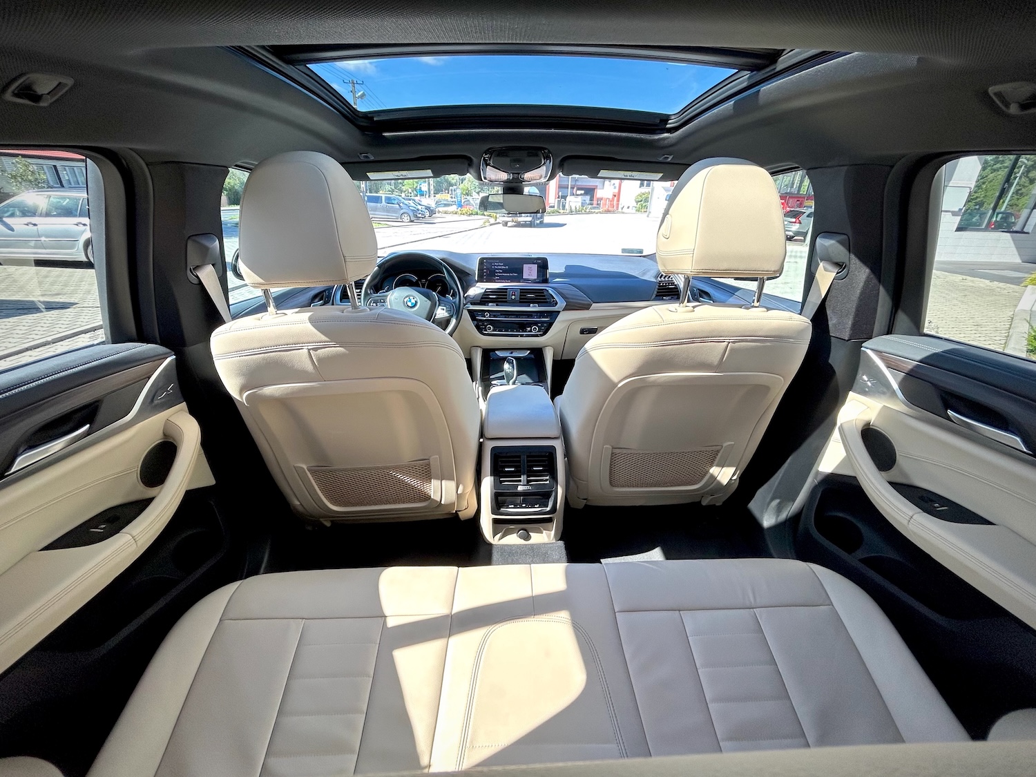 Wyposażenie i samo wnętrze auta to klasa Premium, jak na BMW przystało. Multimedia Professional z CarPlay, nagłośnienie Harman/Kardon, pełna tapicerka skórzana (skóra naturalna + syntetyczna o podwyższonej trwałości), wentylowane fotele przednie, dach panoramiczny, head-up display, bezprzewodowe ładowanie smartfona… – czyli dużo więcej, niż potrzeba na co dzień!