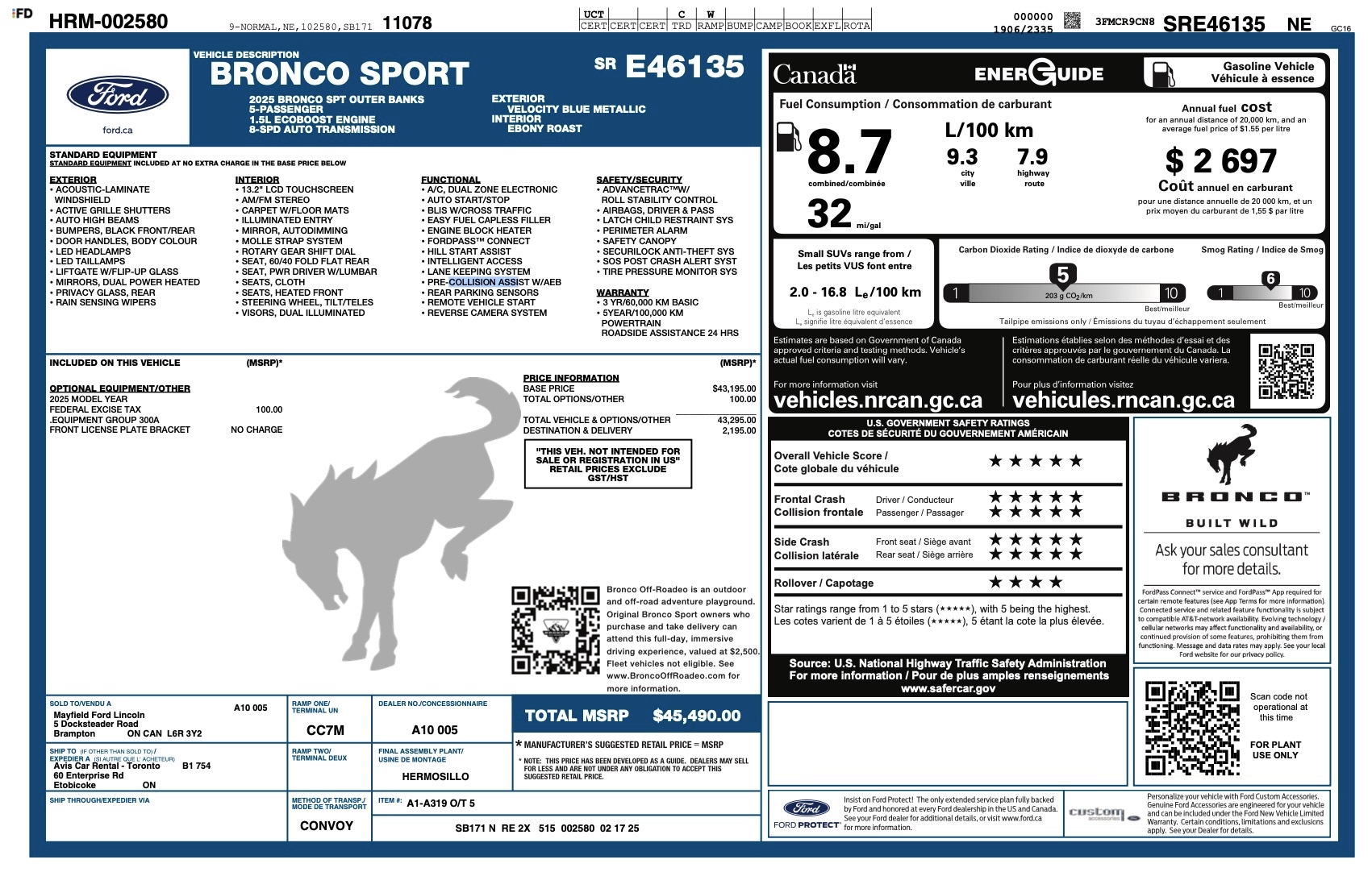 Z nowości, które przyniósł facelifting Bronco Sport na rok modelowy 2025, są też systemy bezpieczeństwa. Adaptacyjny tempomat z asystentem pasa ruchu, czujniki martwego pola czy hamowanie awaryjne to już standard w tym modelu!