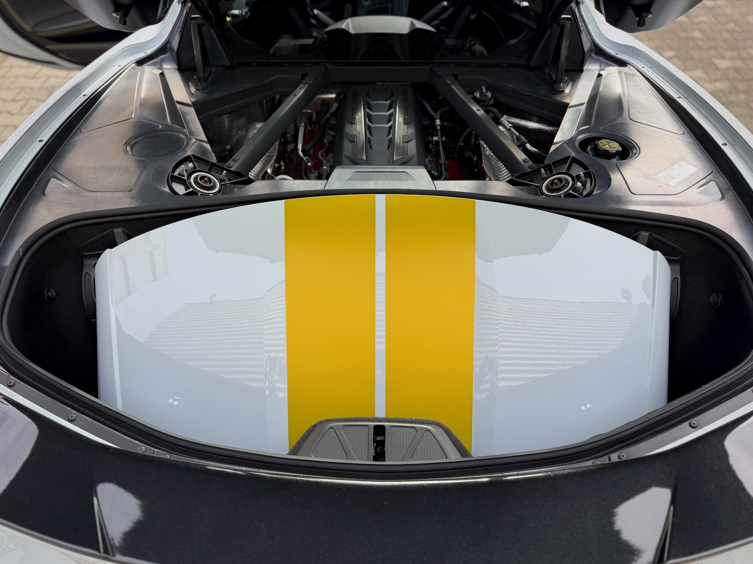 Sam silnik umieszczony jest centralnie a skrzynia biegów zespolona jest ze sportowym dyferencjałem – C8 to pierwsza generacja z tak zaprojektowanym układem napędowym – dzięki czemu rozkład masy w samochodzie jest perfekcyjny (40:60); silnik dociąża tylną oś, a auto ma kapitalną trakcję!