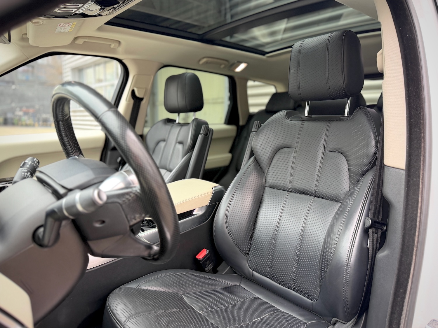 Bogata specyfikacja ze skórzaną tapicerką oraz wentylowanymi fotelami (z przodu i tyłu), grzaną kierownicą, nagłośnieniem Meridian (1280W), dachem panoramicznym, bi-ksenonami, adaptacyjnym tempomatem, asystentem pasa ruchu…