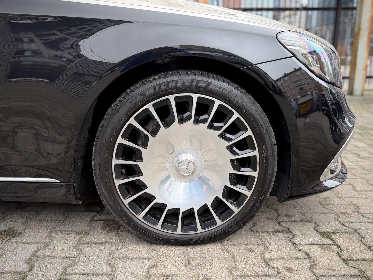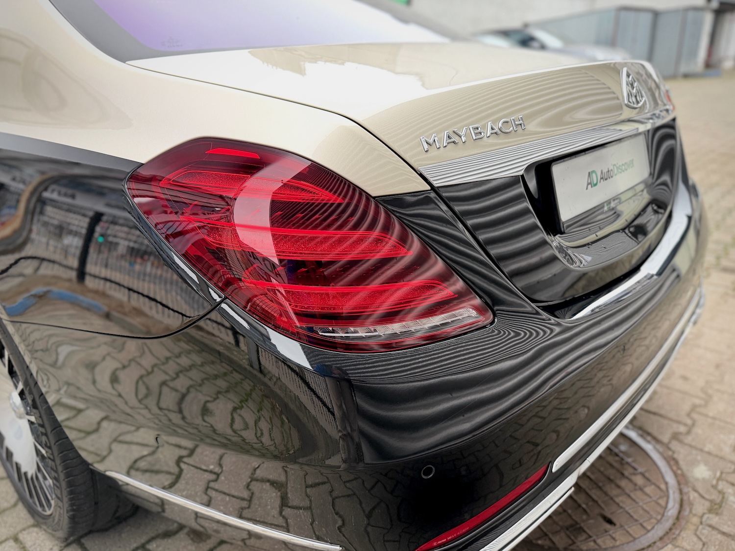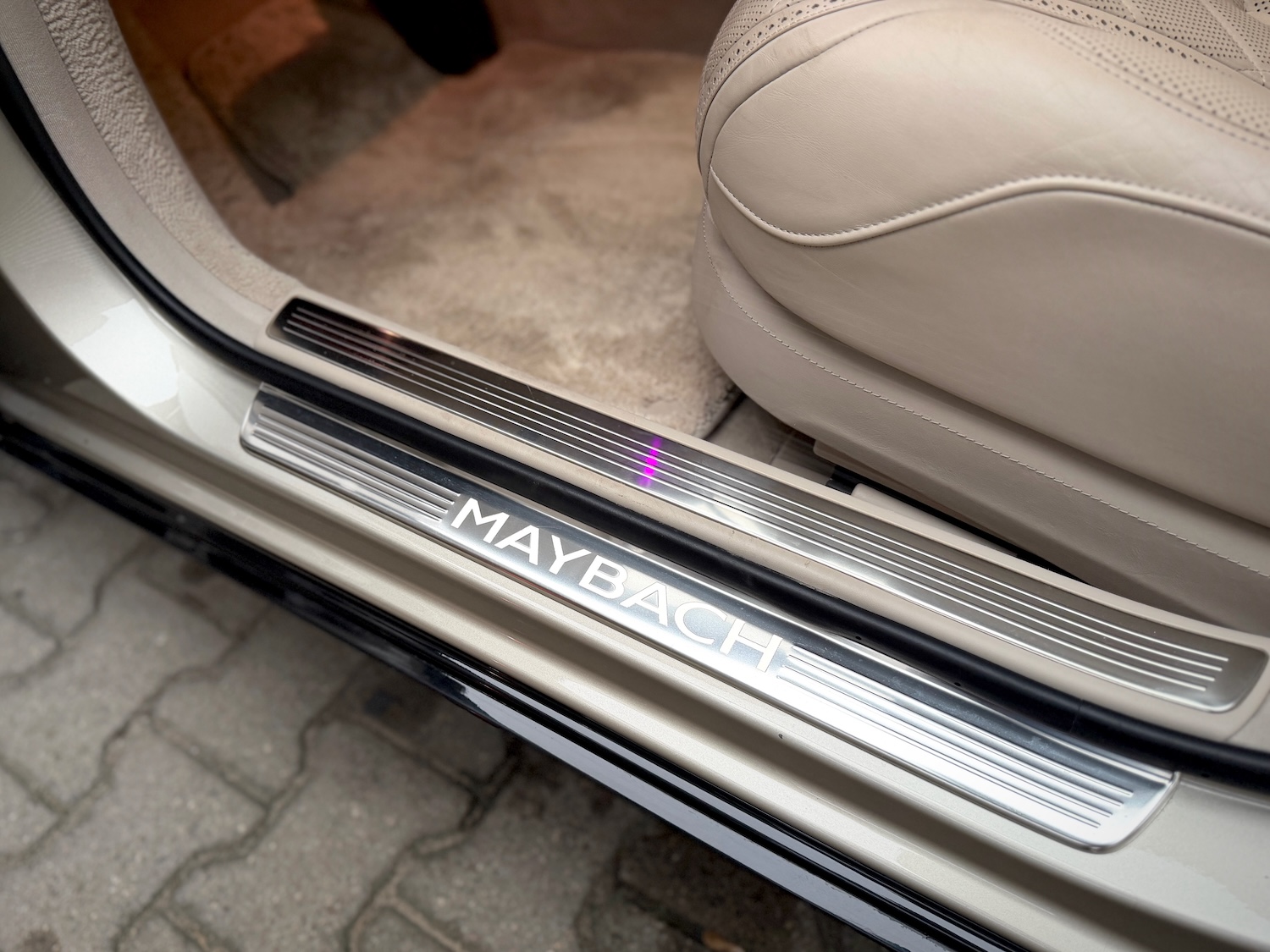 Historia: samochód sprowadzony z USA z uszkodzonym lewym przodem – odbudowany do stanu fabrycznego na oryginalnych częściach MB-Maybach (m.in. fabryczny zderzak przedni i grill Maybach).