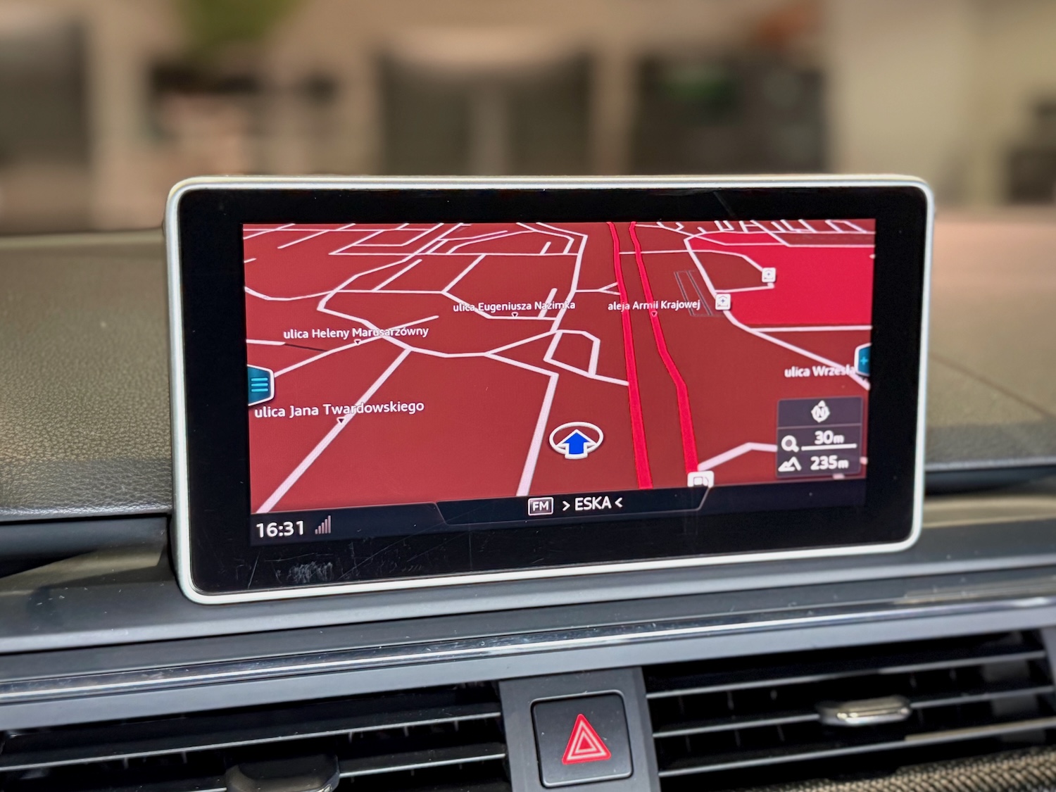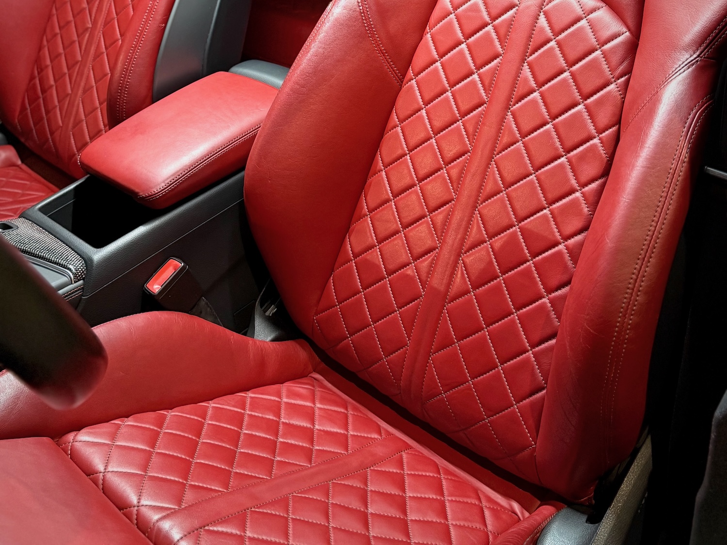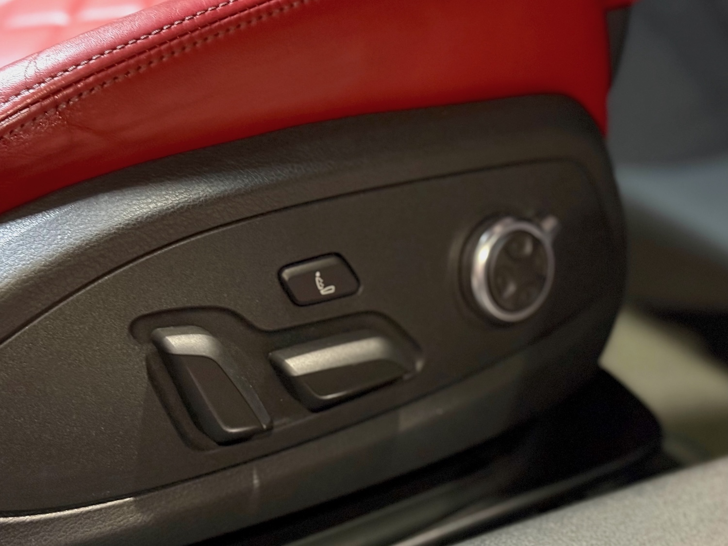 Nasza S4-ka ma też przepiękną dwukolorową tapicerkę ze skóry Nappa i alcantary, z przeszyciami Audi Sport w kształcie diamentów, a same fotele są ogrzewane i posiadają funkcję masażu!