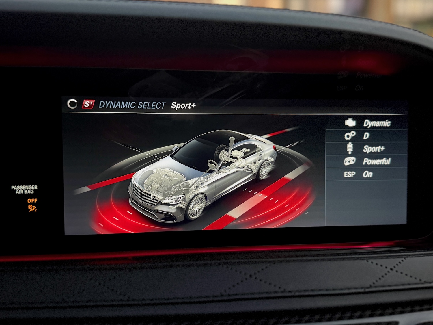 - Zawieszenie adaptacyjne o charakterystyce sportowej z regulowanym prześwitem auta, funkcją samopoziomowania oraz stabilizatorami przedniej i tylnej osi