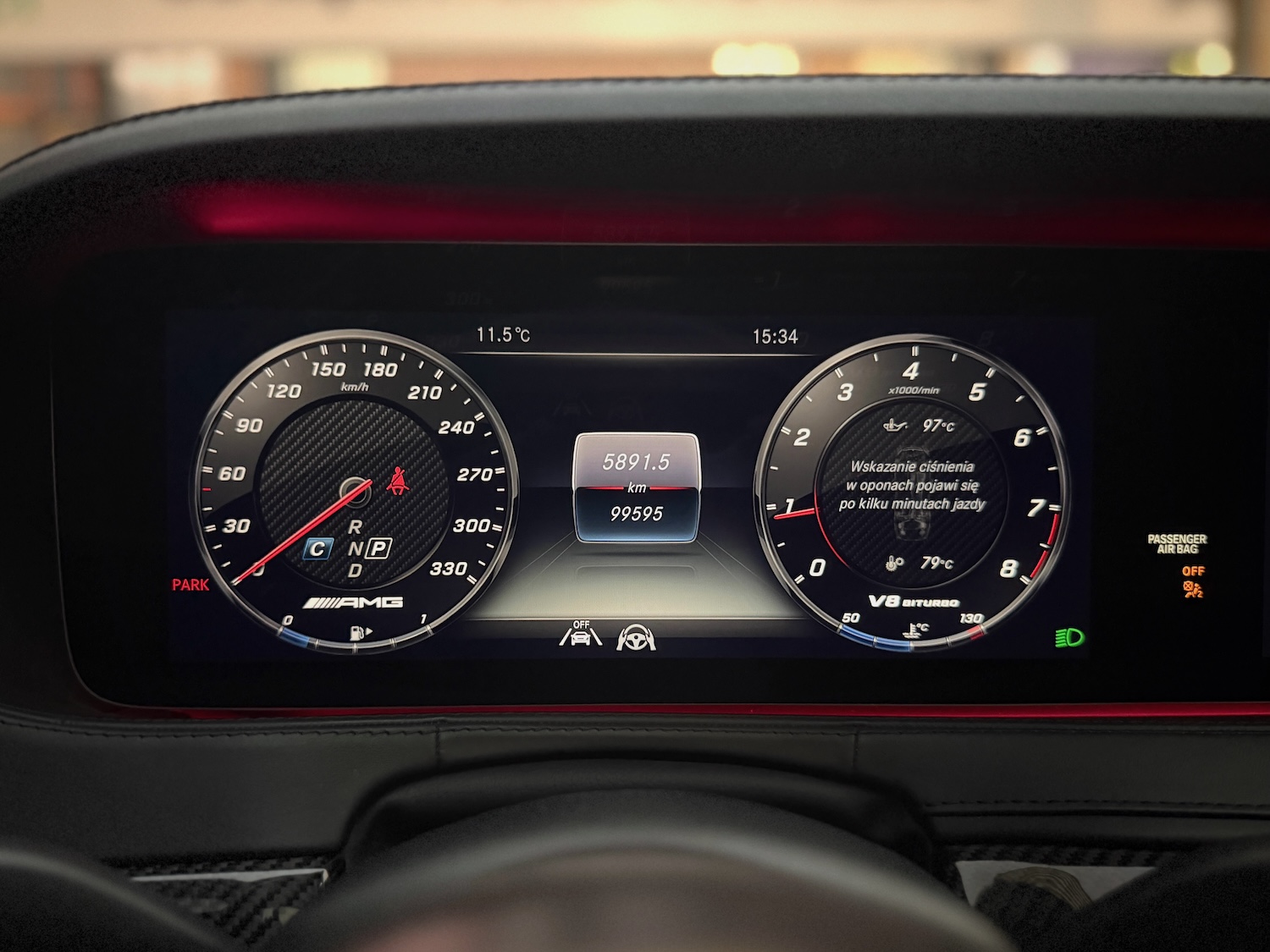 Historia: samochód sprowadzony do kraju z uszkodzonym prawym przodem i wystrzeloną poduszką kierownicy – odbudowany do stanu fabrycznego na oryginalnych część MB AMG.