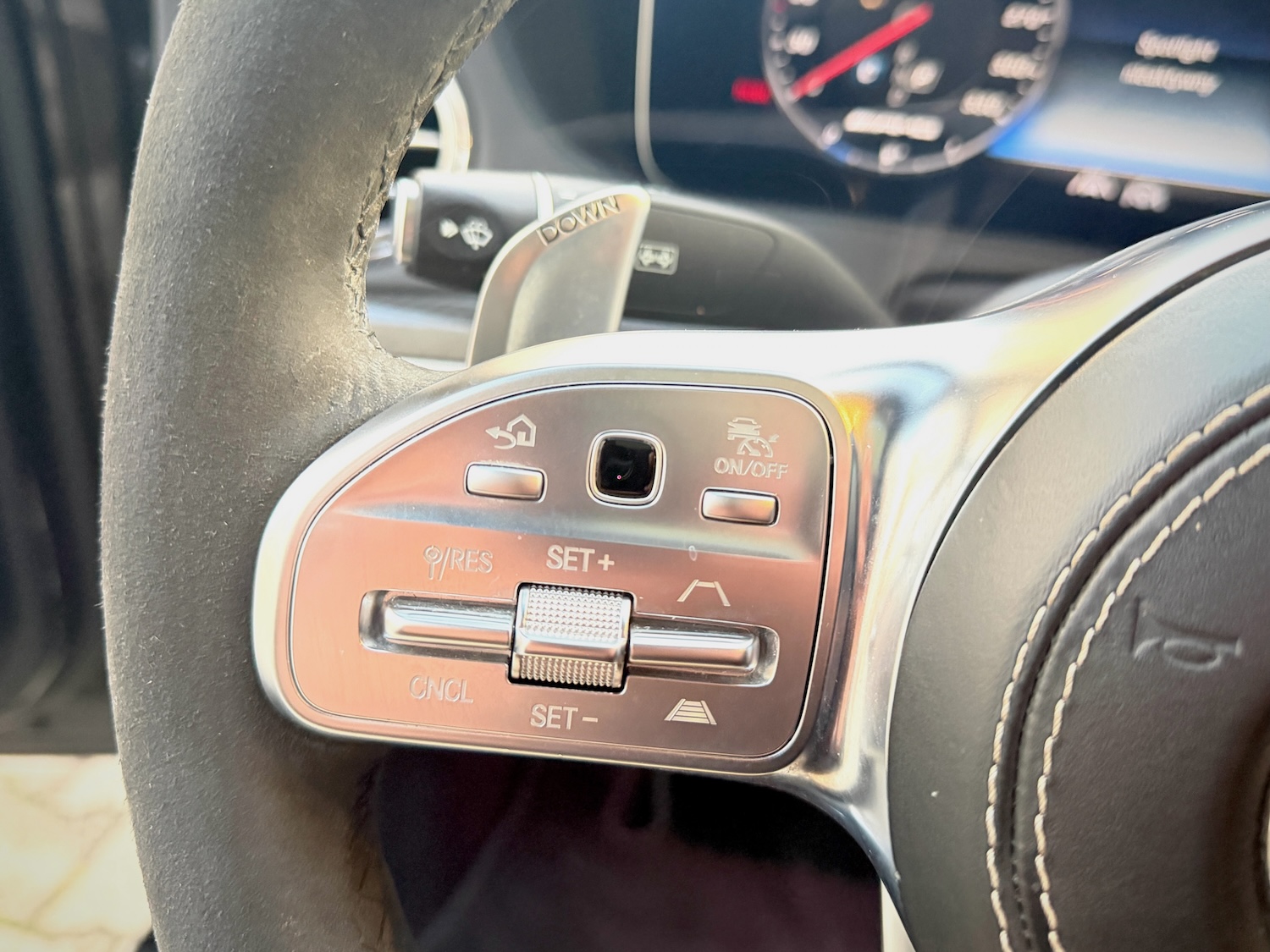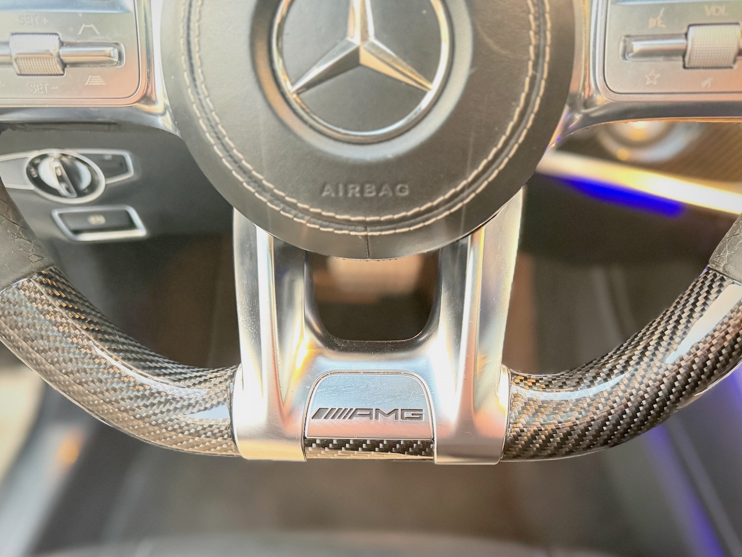 - Kierownica sportowa AMG Performance, wielofunkcyjna, obszyta mikrofibrą i wykończona karbonem, ogrzewana