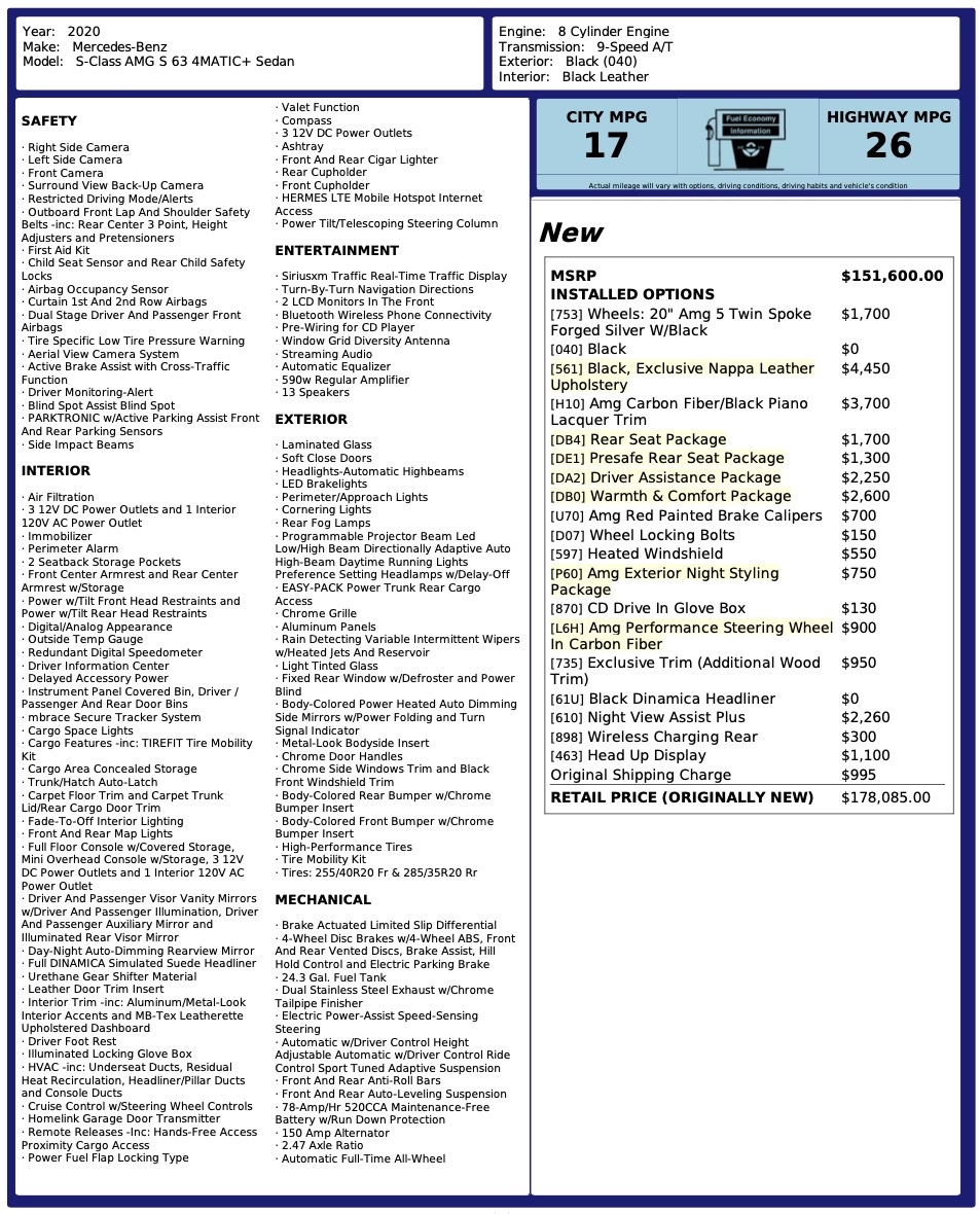 Wartość katalogowa samochodu: 178 085 USD (bez podatków stanowych), w tym 27 tys USD w opcjach!