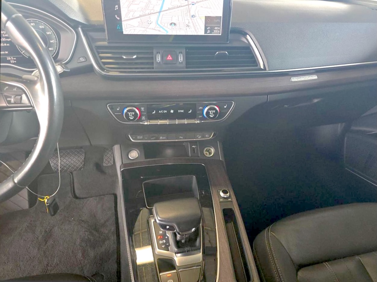 Q5 to także bogate specyfikacje – tutaj Premium Plus. Są cyfrowe zegary (12.3 cala), multimedia MMI Navigation Plus z ekranem 10.1 cala, CarPlay / Android Auto, nagłośnienie Bang & Olufsen 3D, skórzana tapicerka z grzanymi fotelami…
