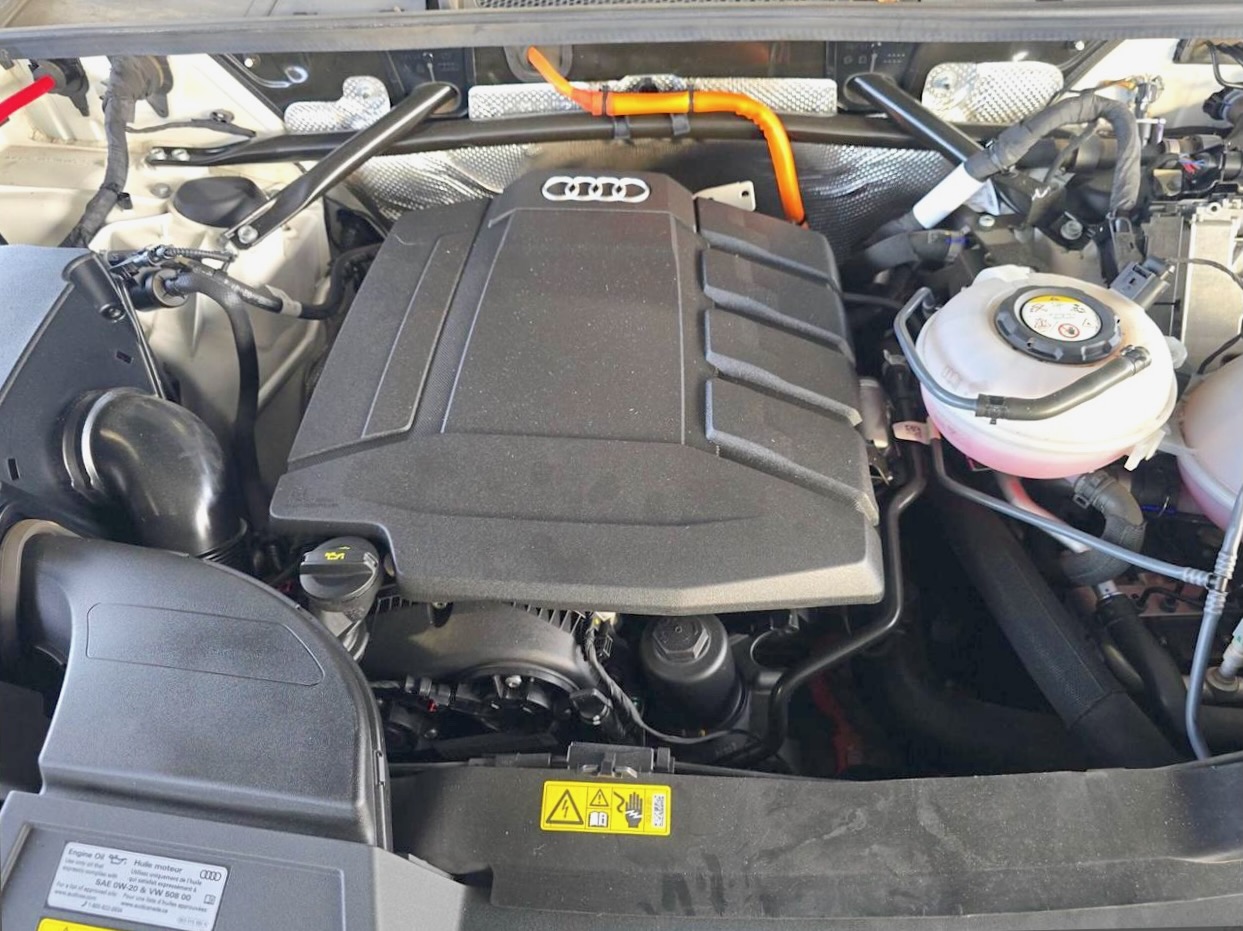 Audi Q5 w wersji 55 TFSI łączy klasyczny, dwulitrowy motor spalinowy TFSI z silnikiem elektrycznym i baterią litowo-jonową (14.1 kWh), która umożliwia jazdę na samym prądzie (zasięg do ok. 35 km).