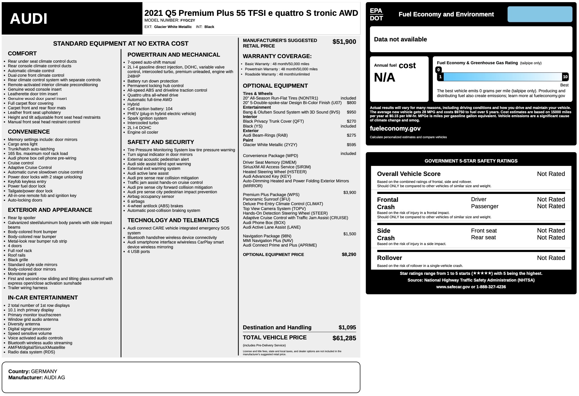 Wartość katalogowa naszego egzemplarza to ponad 61 tys USD (bez podatków stanowych), w tym ponad 8 tys. USD w wyposażeniu dodatkowym!