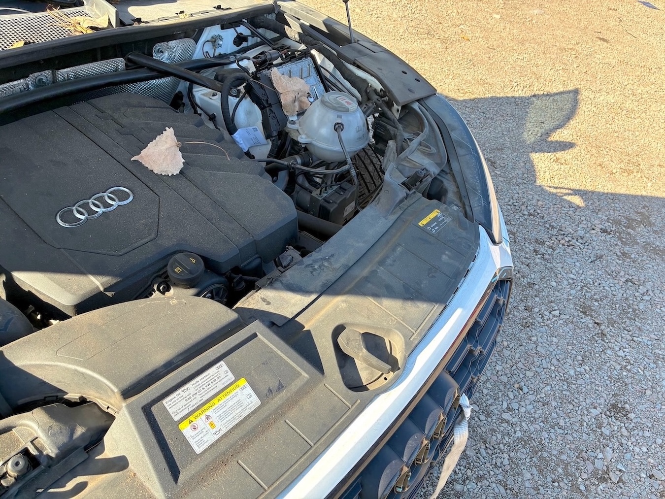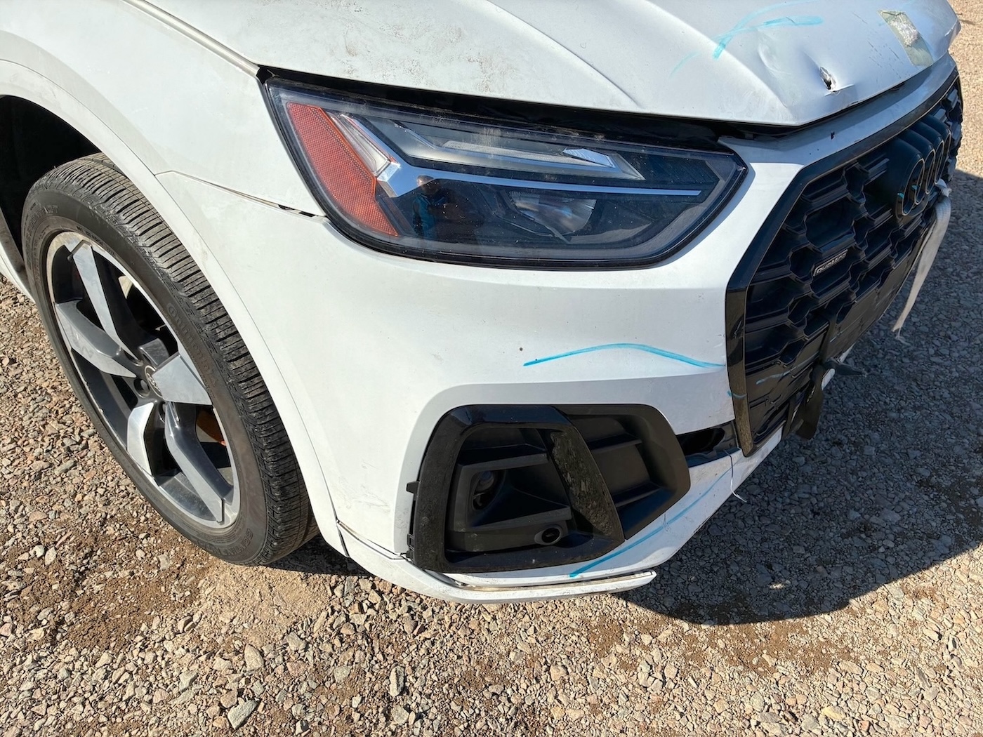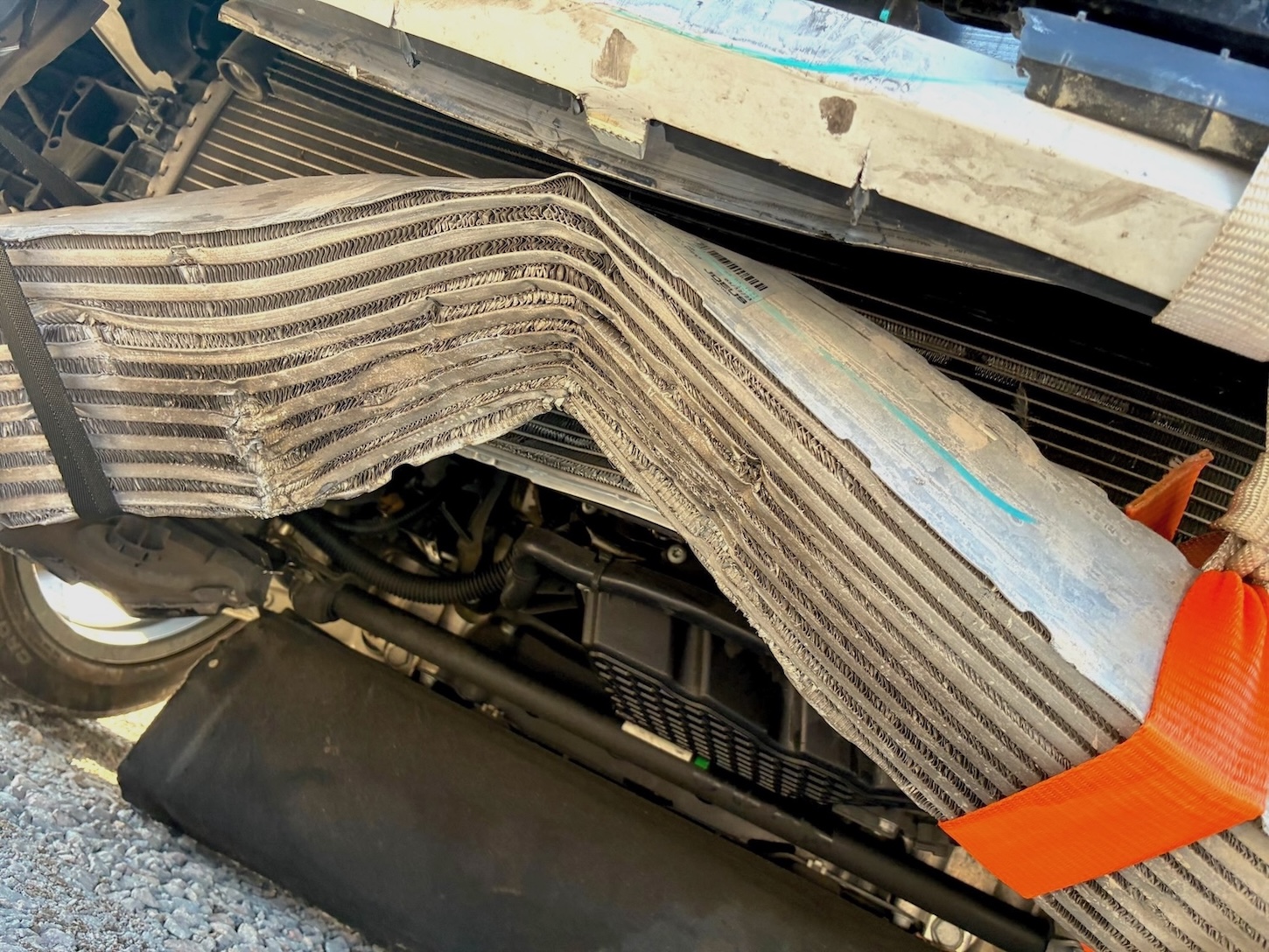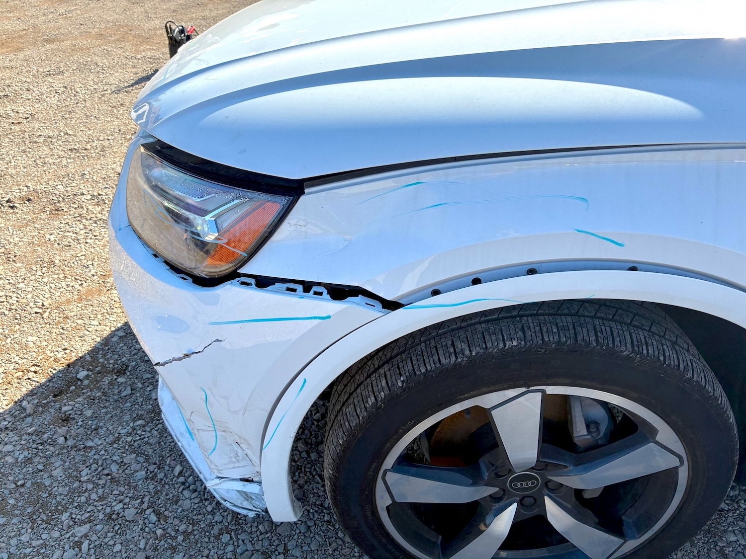 Auto ma nieznacznie uszkodzony lewy przód (w tym chłodnica oleju / wg. CARFAX szkoda lżejsza niż Moderate – średnia), ale też odpala i jeździ (Run & Drive) a maska tylna jest podgięta na rancie (do naprawy)