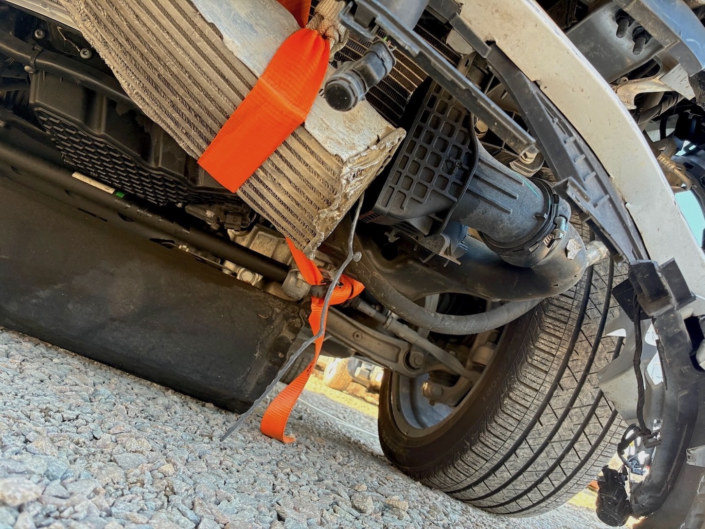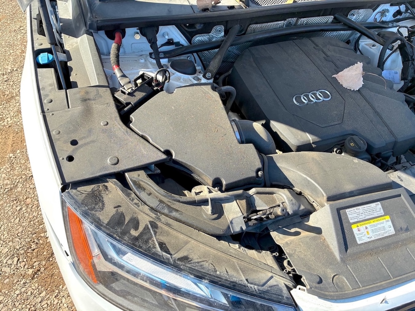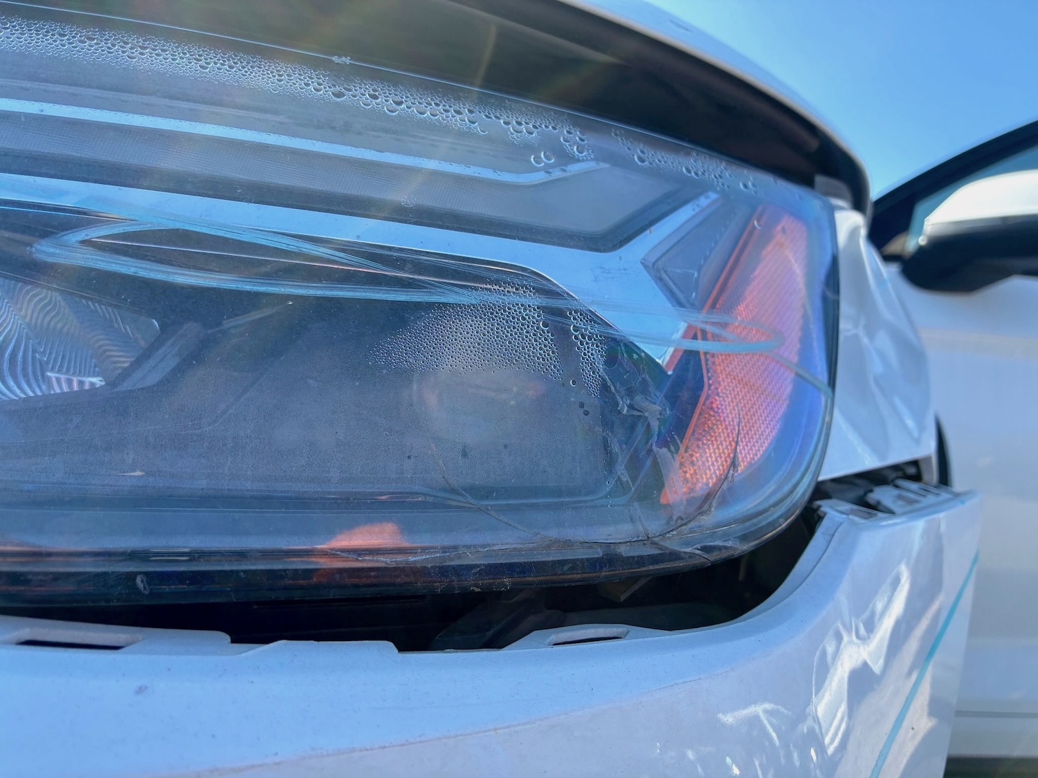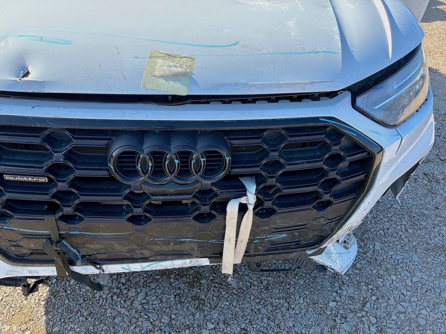Auto ma nieznacznie uszkodzony lewy przód (w tym chłodnica oleju / wg. CARFAX szkoda lżejsza niż Moderate – średnia), ale też odpala i jeździ (Run & Drive) a maska tylna jest podgięta na rancie (do naprawy)