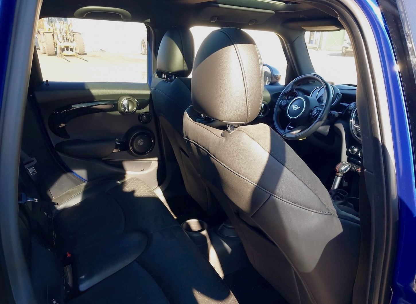 Jak na klasę Premium przystało, auto jest świetnie skonfigurowane, by wymienić choćby skórzaną tapicerkę z grzanymi fotelami, dach panoramiczny, system multimedialny z MINI Excitement Package i Visual Boost (CarPlay / Android Auto) czy nagłośnienie Harman-Kardon!