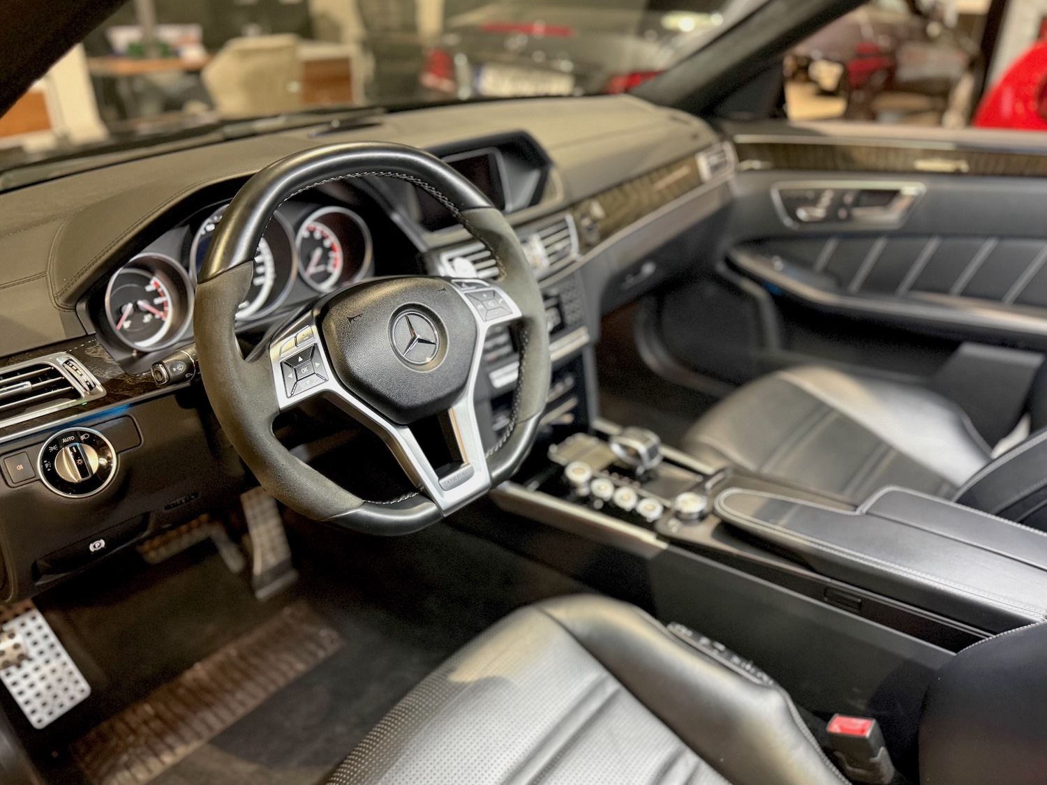 Jednocześnie AMG E 63s może być potulne i super wygodne – klimatyzowane fotele, skóry Nappa, naturalne drewno, wydajna klimatyzacja…