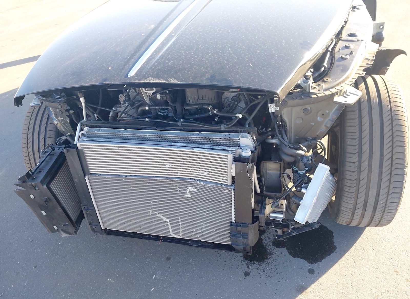 Historia: samochód zakupiony z uszkodzonym przodem (zderzak, atrapa grilla, reflektory, chłodnice) oraz wystrzeloną poduszką kierownicy, kolanową oraz kurtyną lewą.